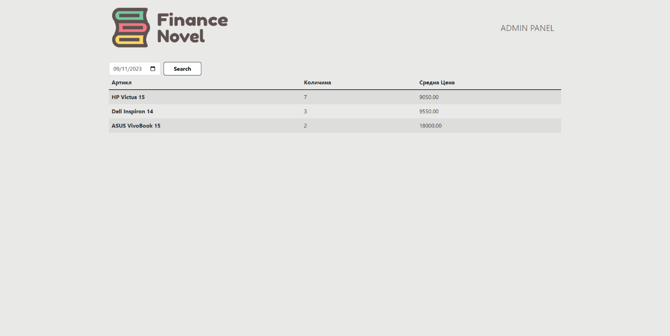 Ако сакаме да филтрираме по датум можеме горе да ставиме датум и да стиснеме Search, кое потоа ќе ни ја прикажи состојбата на магацинот на тој датум.