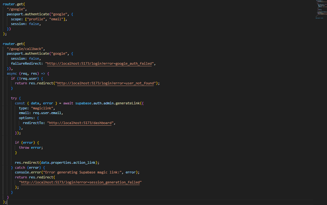 На крај, се генерира supabase magic link, со кој се комплетира најавата, се тригерира SIGNED_IN event и се воспоставува сесија, а корисникот е пренасочен кон контролната табла.