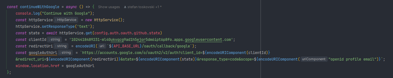 Следно, со потребните параметри се праќа барање до OAuth endpoint на Google (во овој случај.)