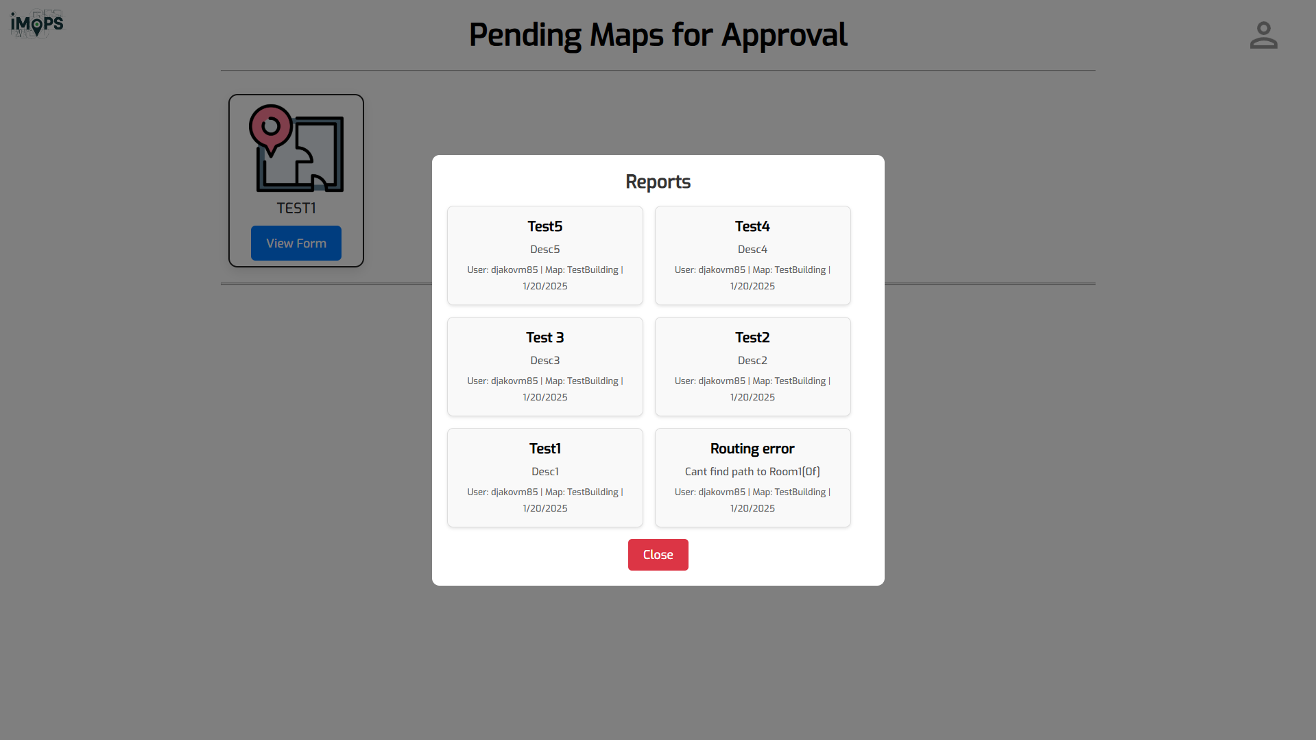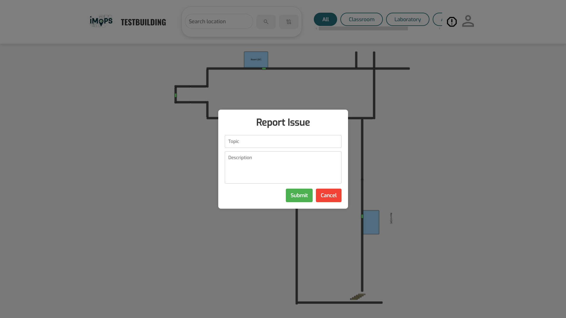 Корисникот започнува со клик на иконата за извештај. Се појавува модално прозорче каде што може да ги внесе темата и описот на проблемот.