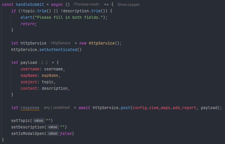 Со користење на HttpService се праќа барање до Spring апликацијата за обработка на извештајот: