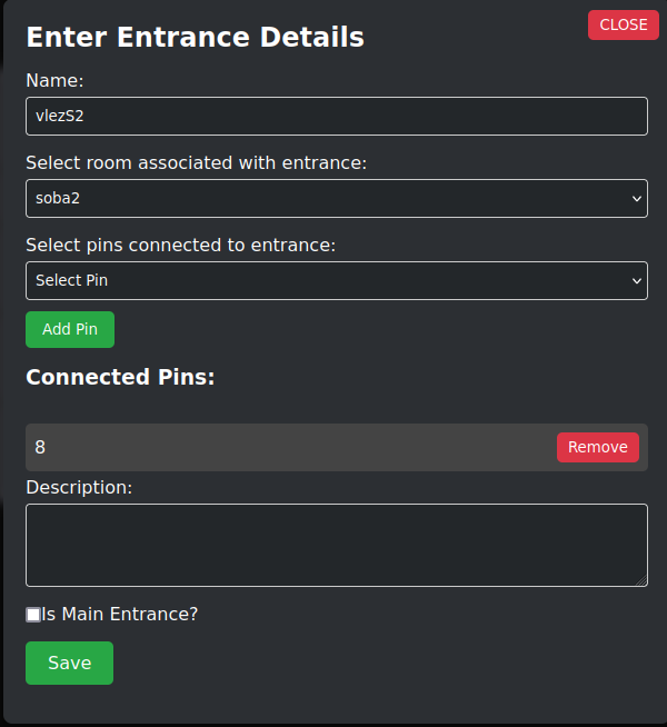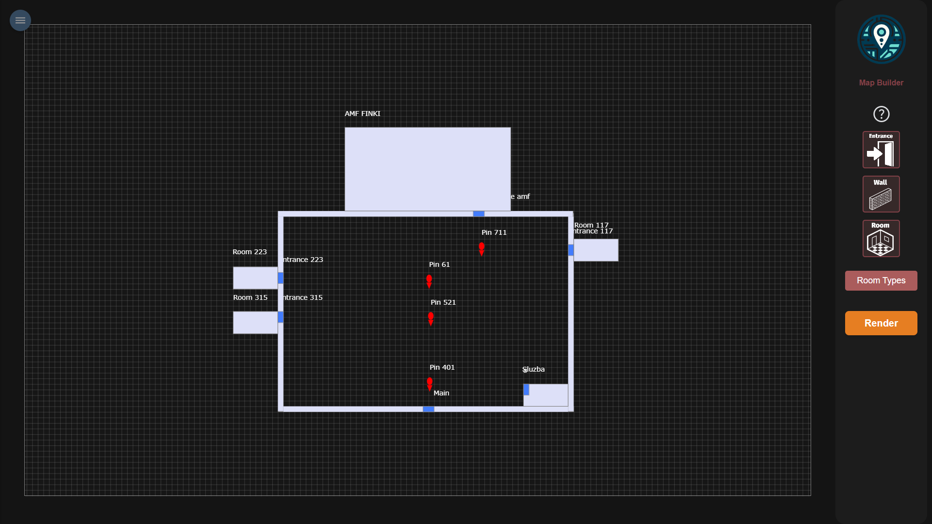При двоен клик на на соба, влез или игличка, се појавува форма во која што се додааваат информации за фигурата (просторијата), кои понатаму се користат за навигација и прикажување на информации во вчитаната мапа.