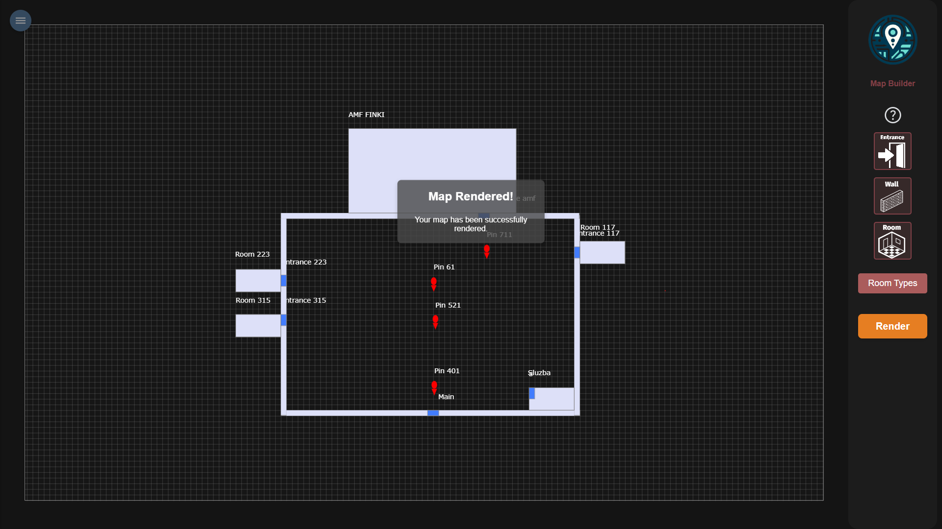 Со притискање на копчето "Render", нацртаната мапа се вчитува, обработува и се пренесува на \View страната.