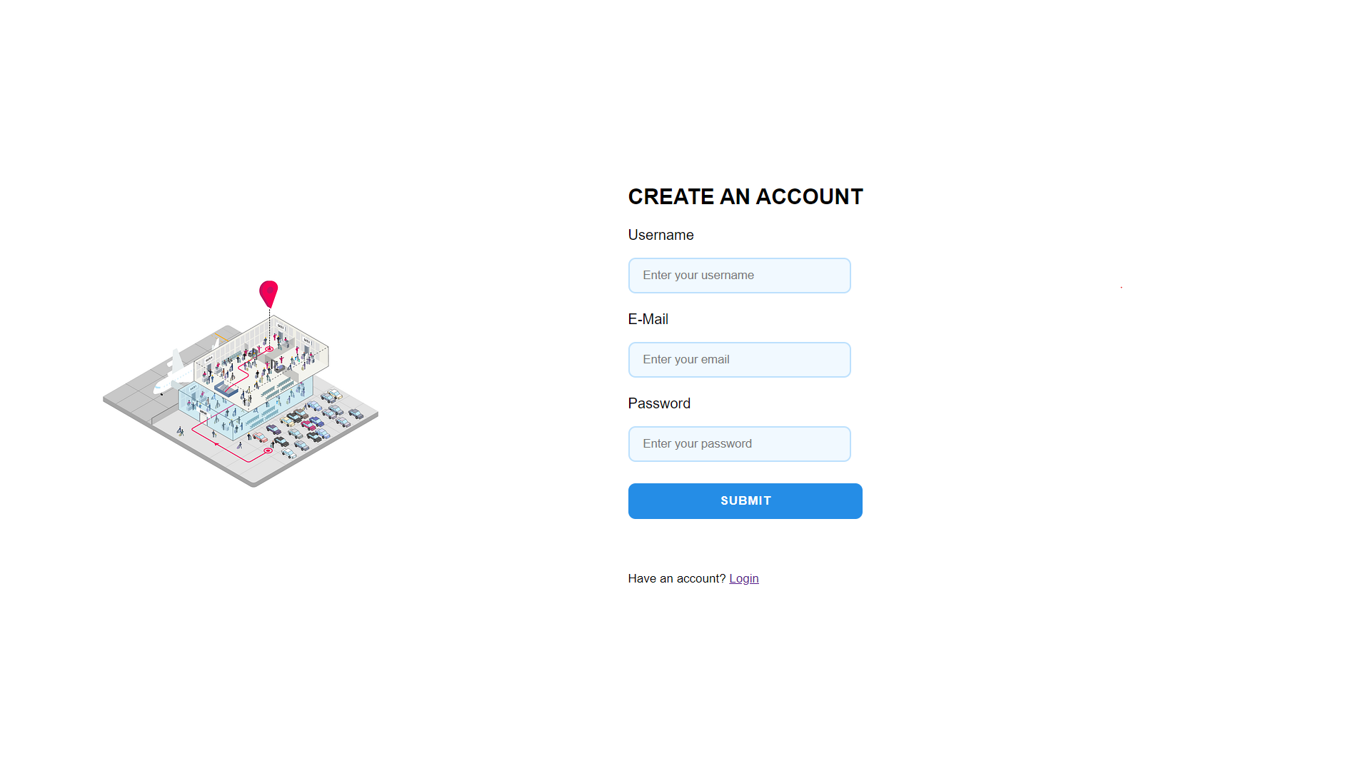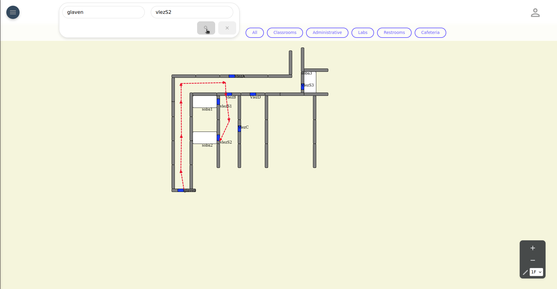 Со клик на копчето за навигација, излегуваат две полиња: "from" и "to". Корисникот внесува од каде, до каде сака да појде. Со клик се исцртува патека.