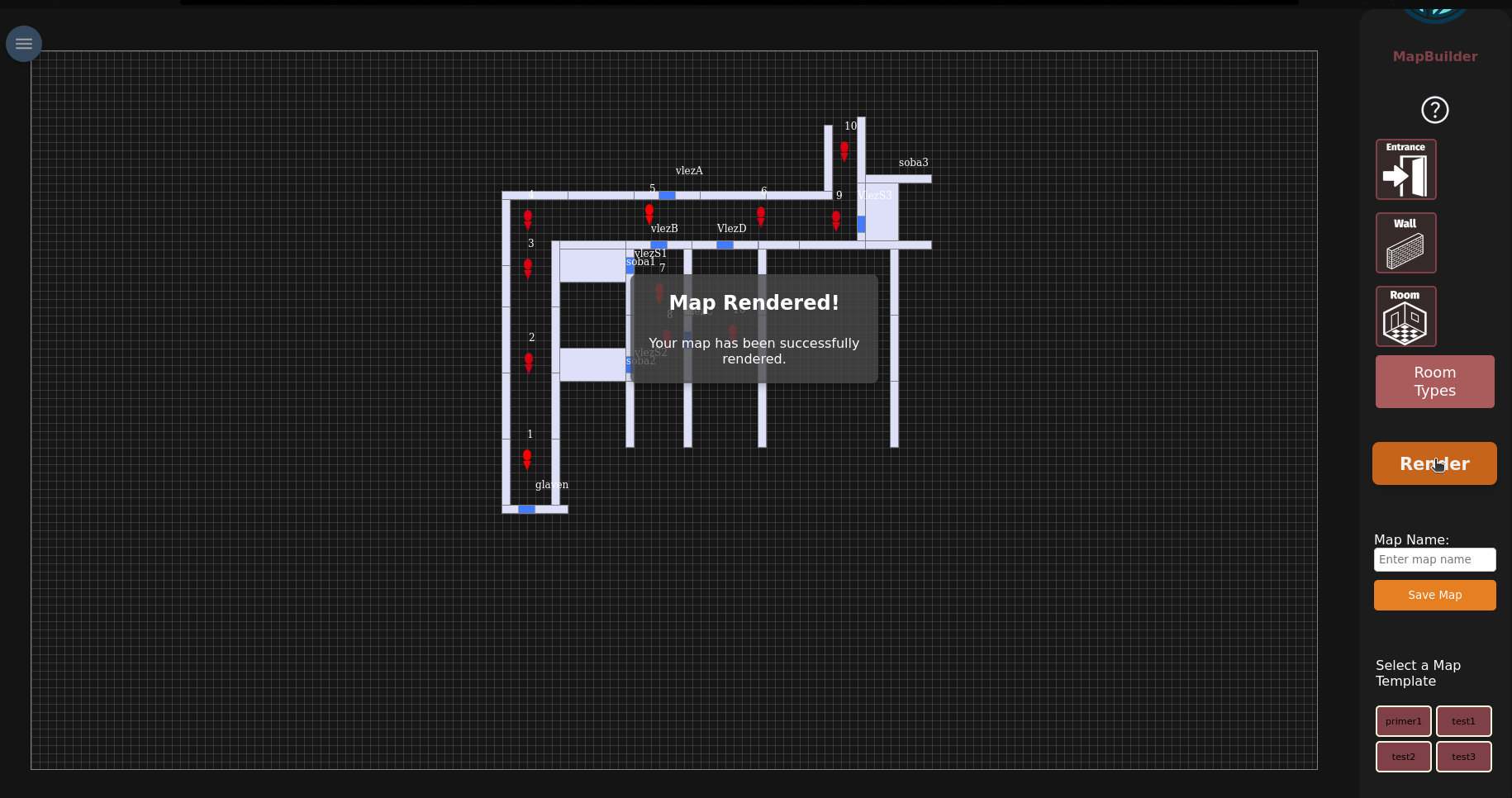 Со притискање на копчето "Render", нацртаната мапа се вчитува, обработува и се пренесува на \View страната.