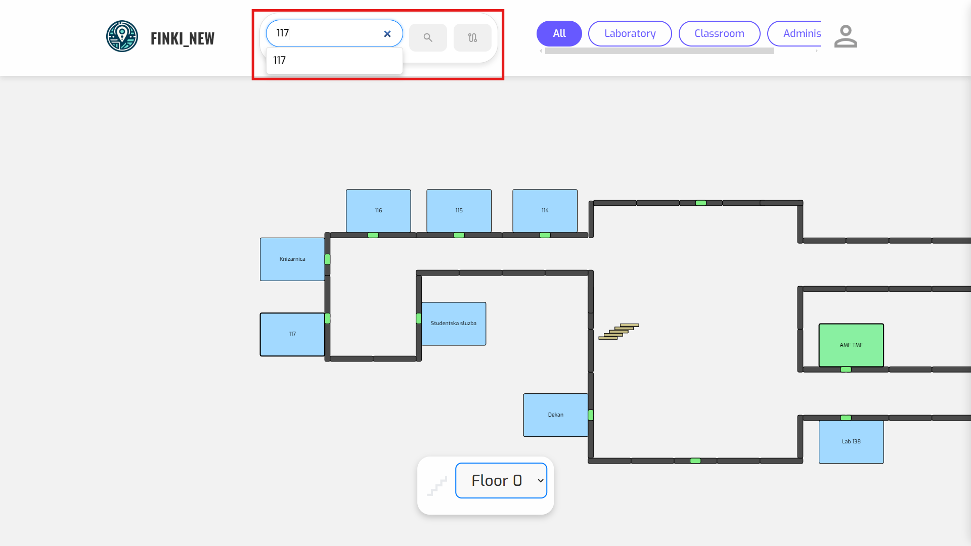 Корисникот внесува име на просторија во полето за пребарување и клика на копчето за да пребара