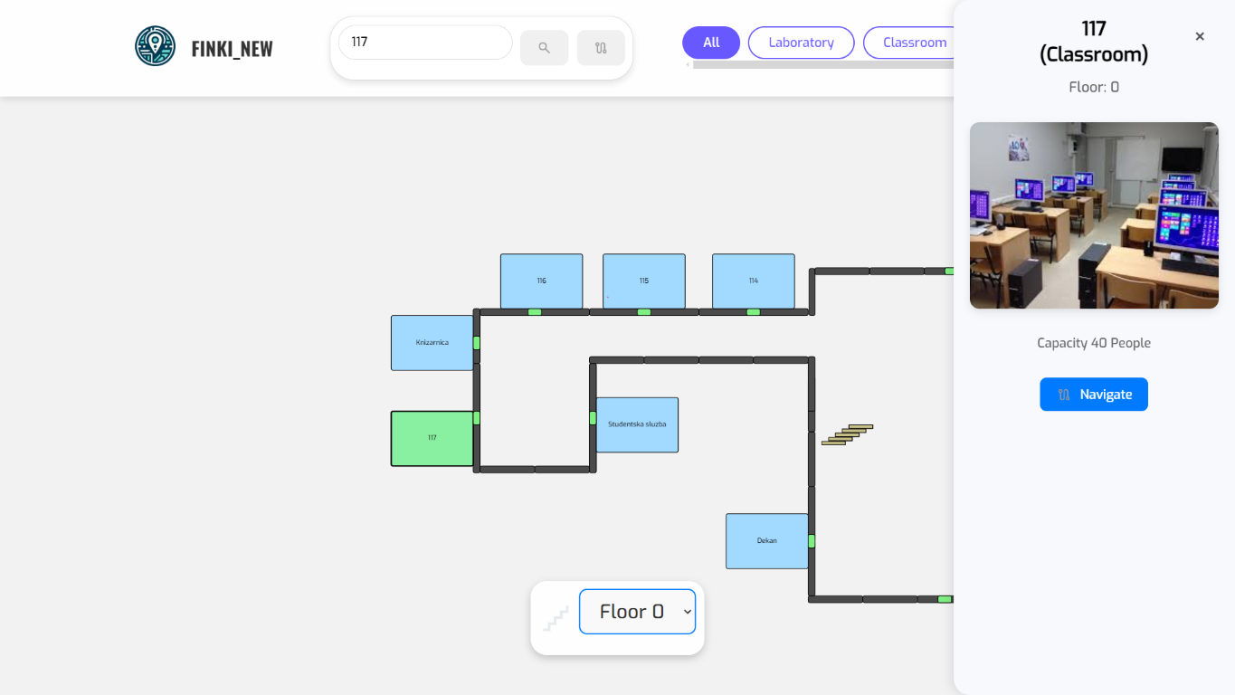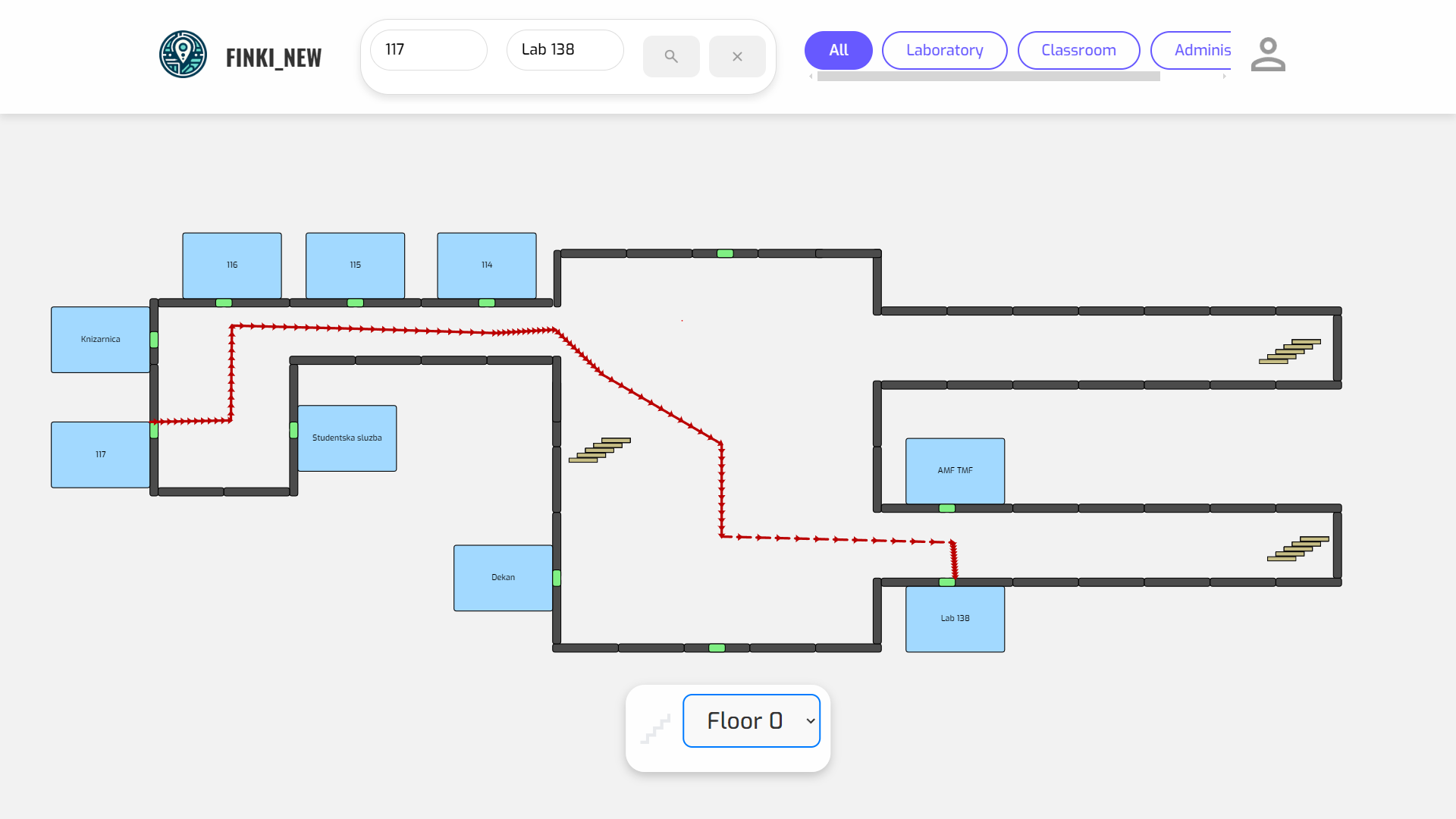 Се црта патека на мапата која корисникот може да ја следи за да се навигира до посакуваната просторија.