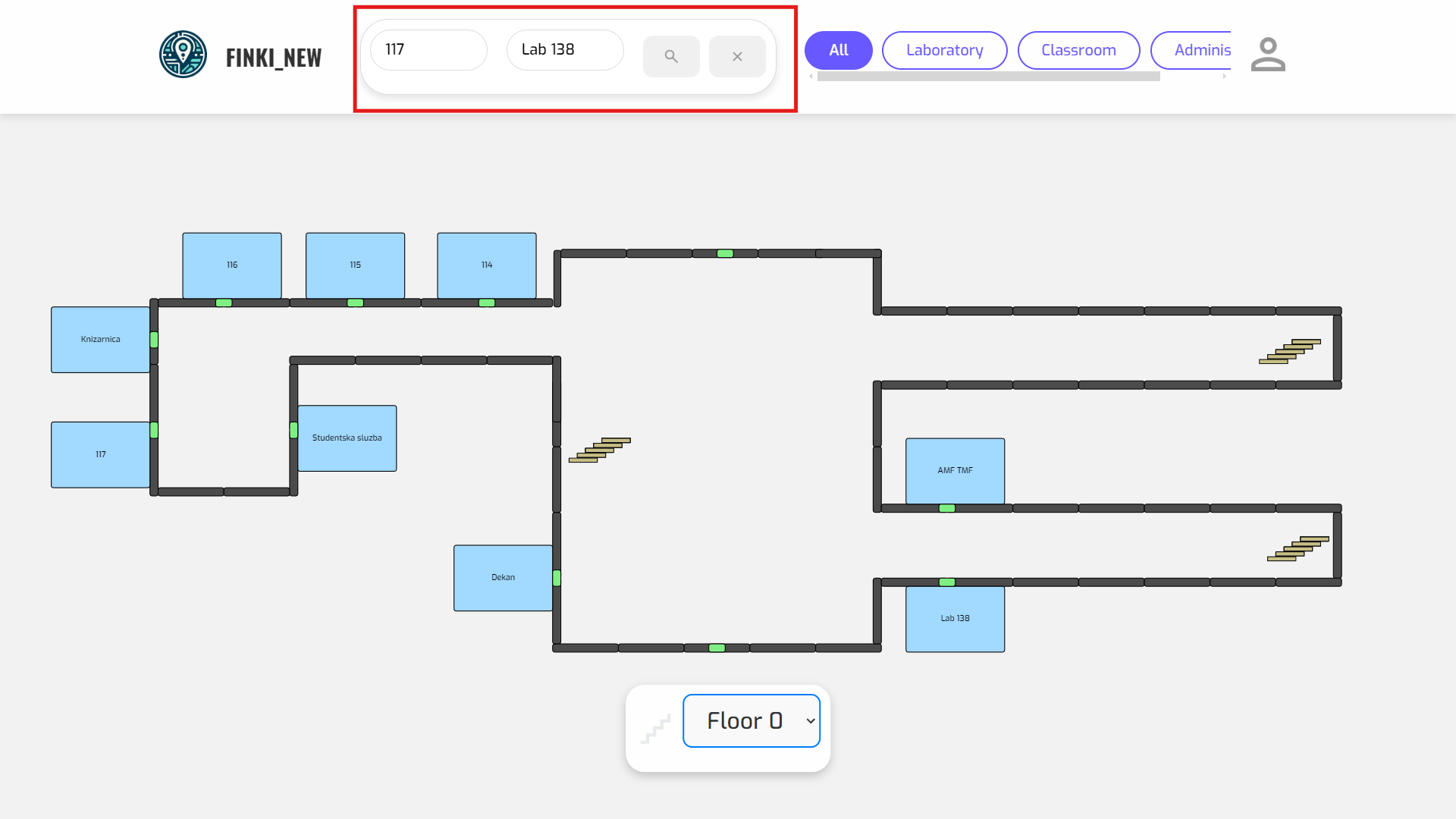 Корисникот ги внесува двете простории во полињата за навигација и клика на копчето "Navigate"