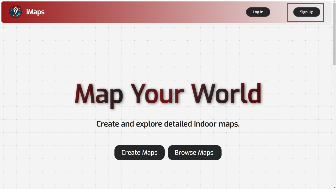 Корисникот се наоѓа на Home страната и клика на копчето "Sign Up"