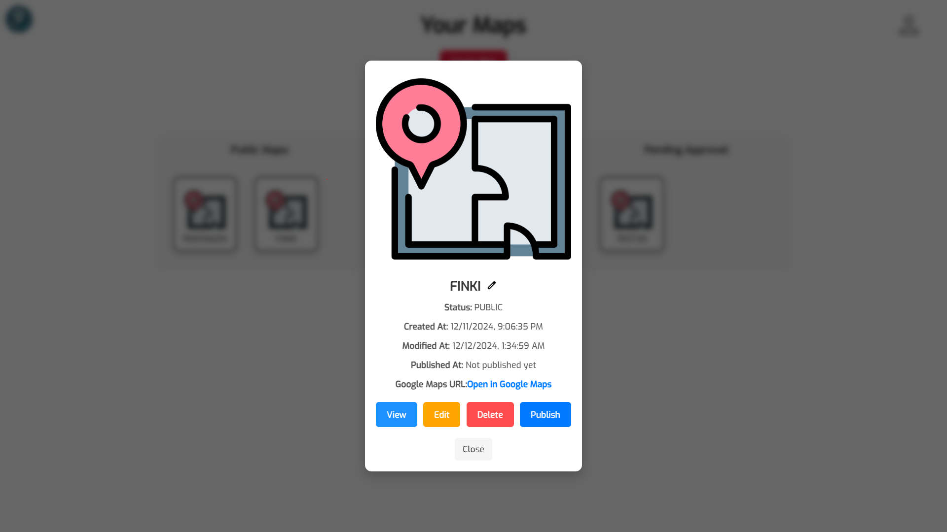 Корисникот се наоѓа на страната за приказ на свои мапи