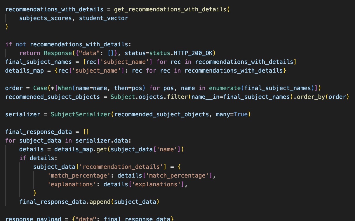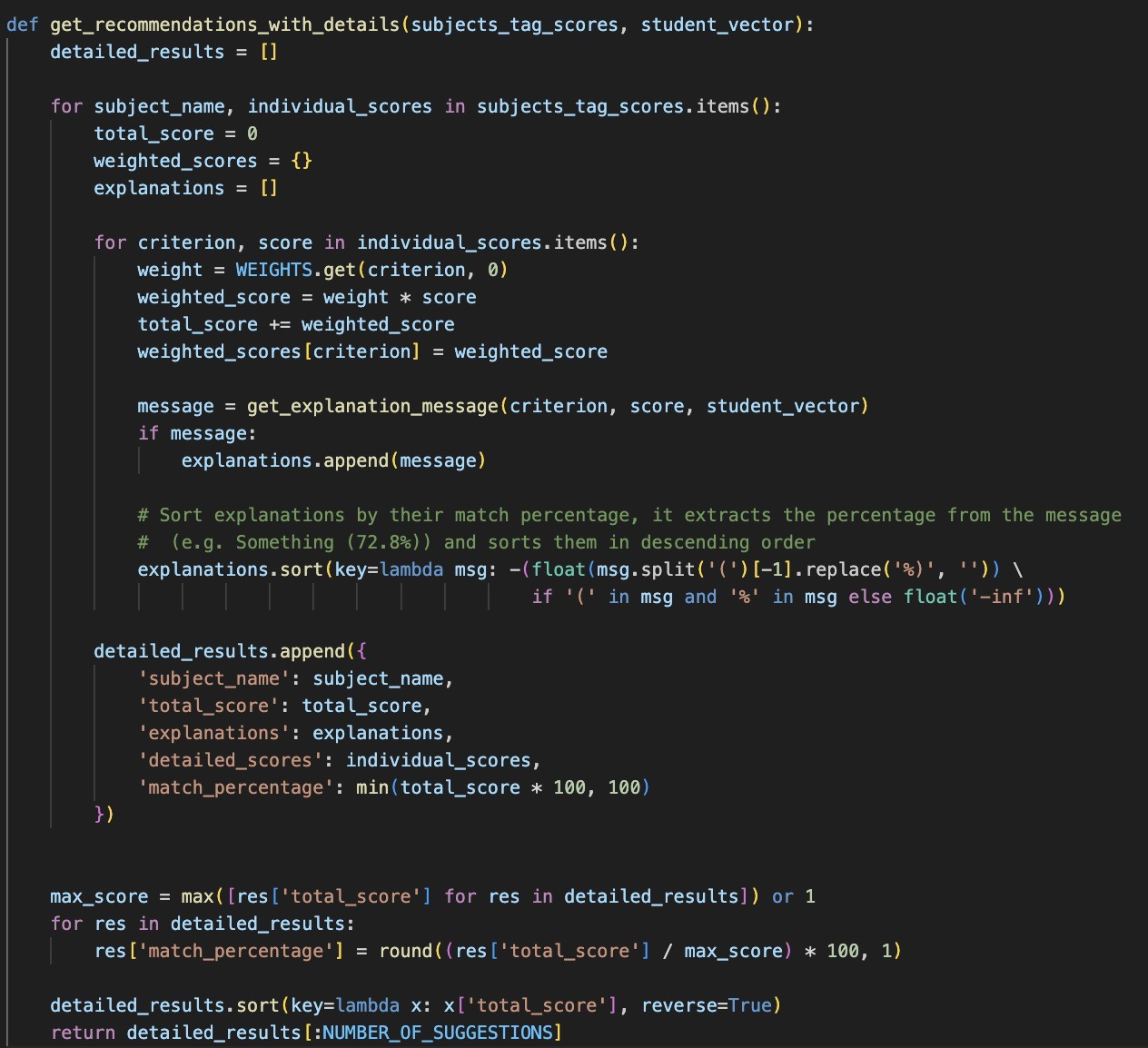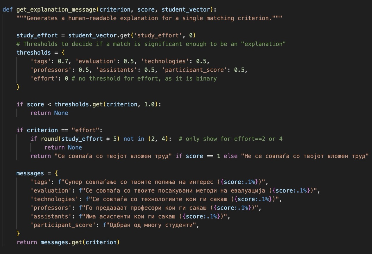 Главната логика за добивање на препораки останува исто, само дополнително се воведува логика за генерирање на текстуални описи за совпаѓањата.