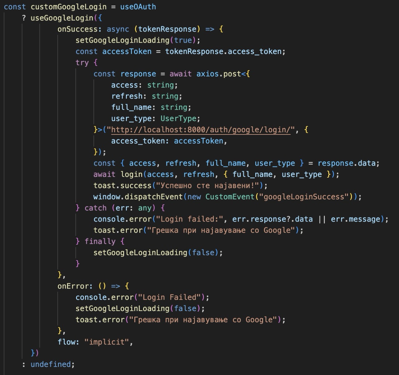 ИД: 10 - Најава на корисник со Google профил преку OAuth2