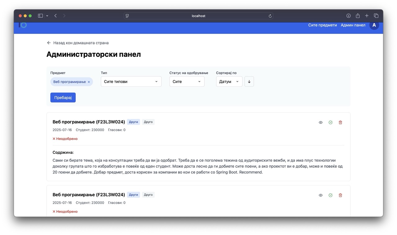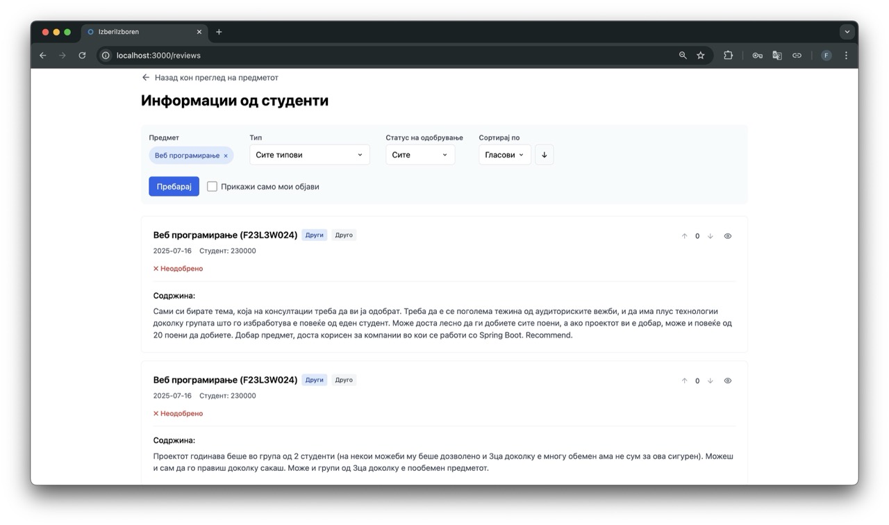 | 12 | Преглед на дополнителни информации оставени од студенти |