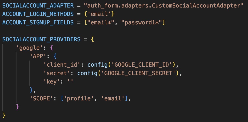 Додадена е следната конфигурација, каде што CLIENT_ID и CLIENT_SECRET се земени од Google Cloud Platform:
