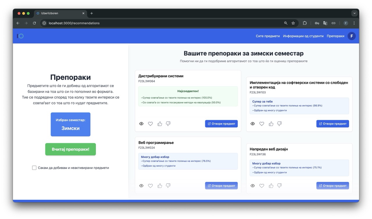 | 13 | Добивање дополнителни информации за причината зошто предмет е препорачан |