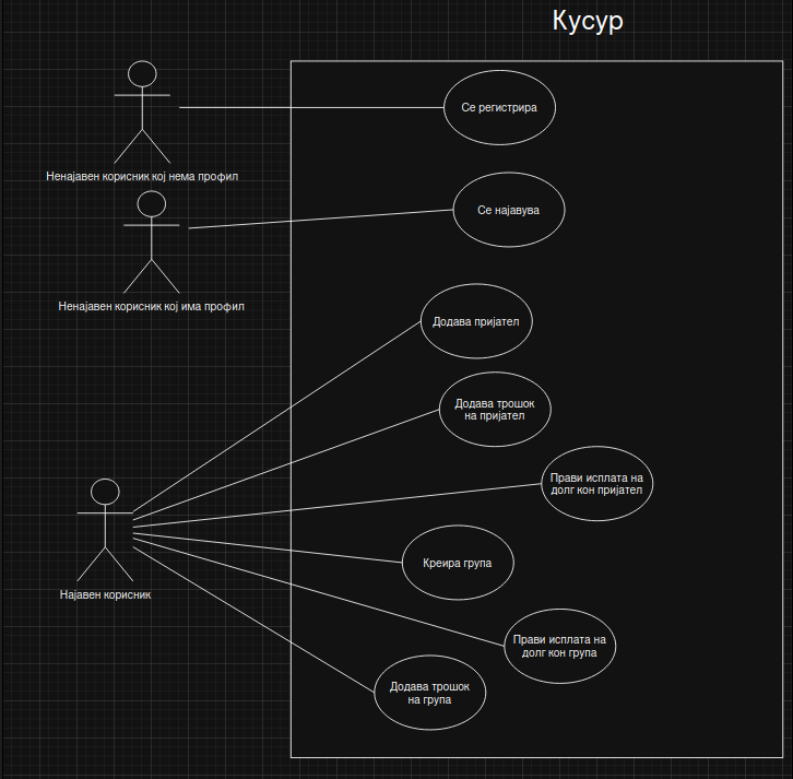 UML UseCaseList дијаграм