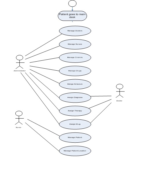 The main actors that are involved in the first use case diagram are: administrator, doctor and nurse.
