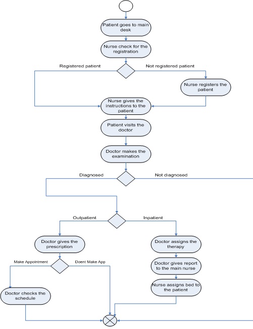 The activity diagram addresses a dynamic view of the system, it also emphasizes the flow of objects and synchronization of the flow in support of parallel processing. Here are presented two activity diagrams the first one is the main activity diagram which represents the most important activities of the system, and the second one is the schedule-appointment activity diagram.
