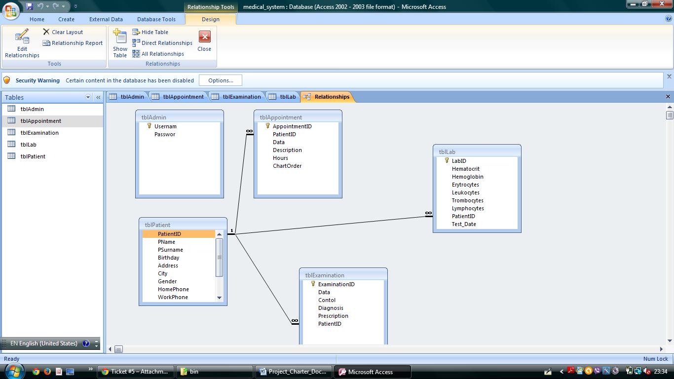 For the project MDK we cretated some tables: tblAdmin, tblAppointment, tblExamination, tblLab, tblPatient for good function on MDK projects.