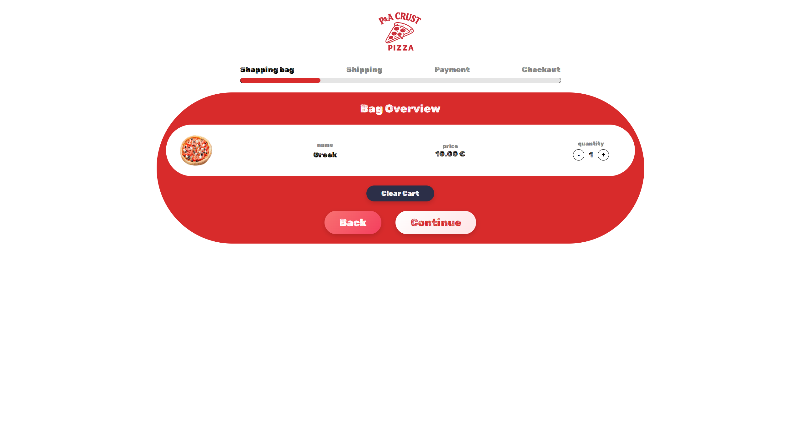 За плаќање на нарачката корисникот клика на кошничката и прво што се отвора е Bag Overview. Тука може да се избрише цела нарачка со Clear Cart или да се продолжи понатаму.