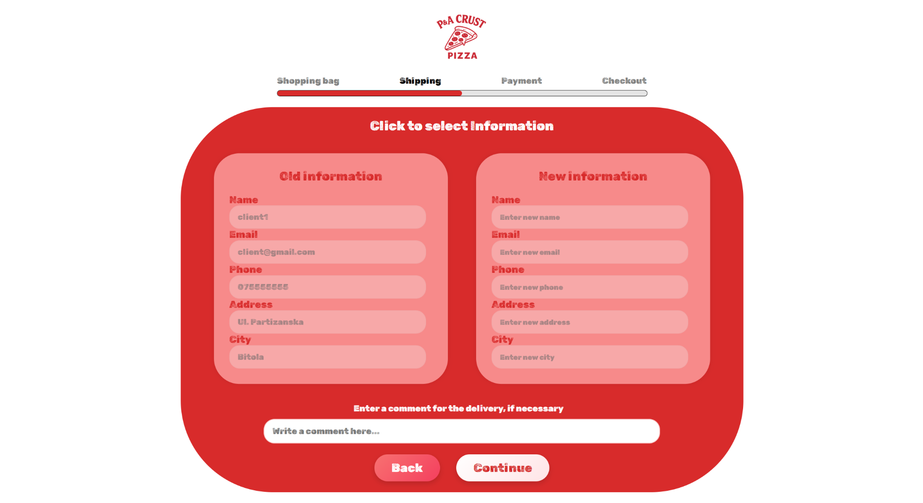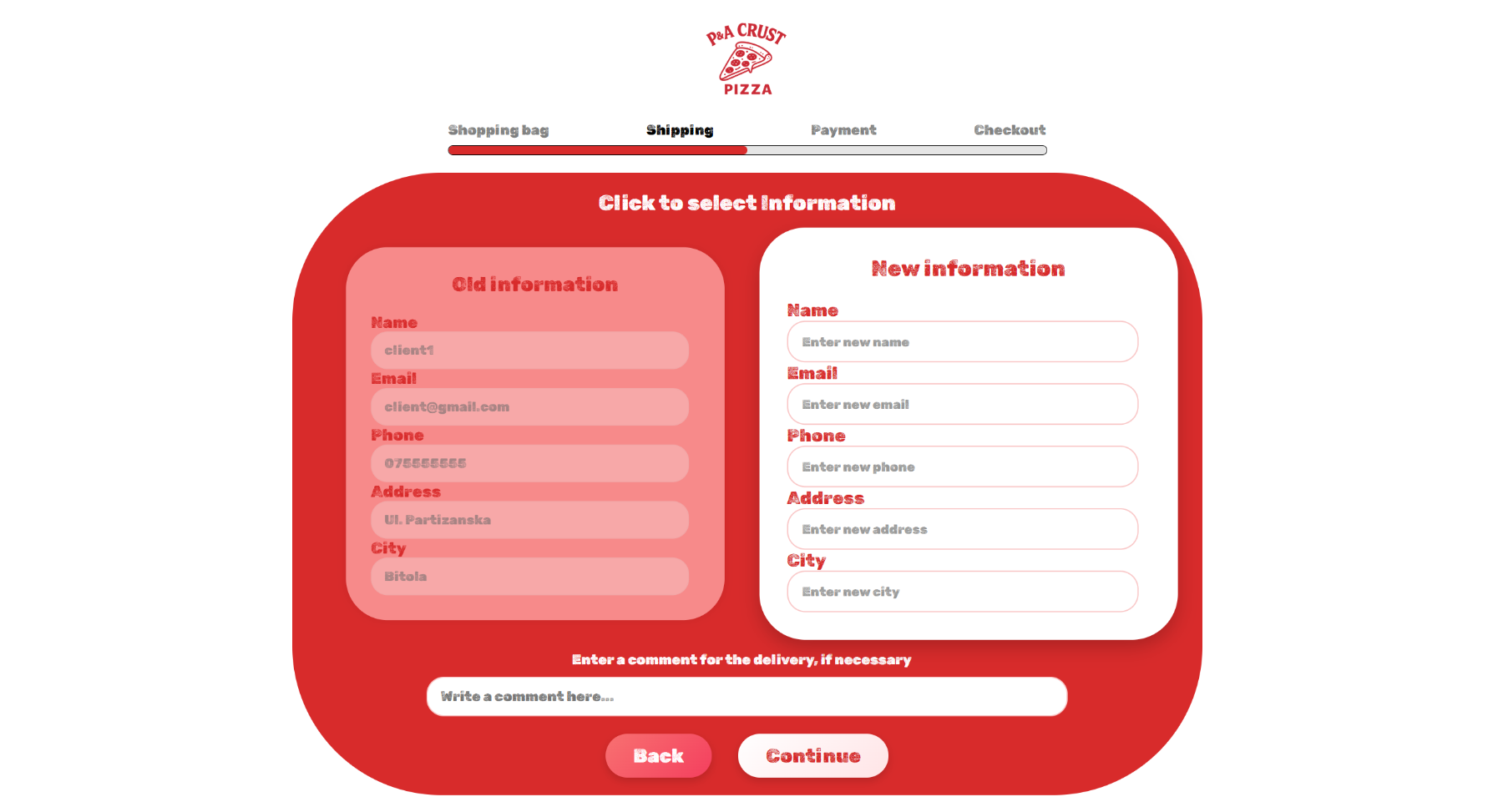 Или да внесе нови податоци каде сака да се достави нарачката.