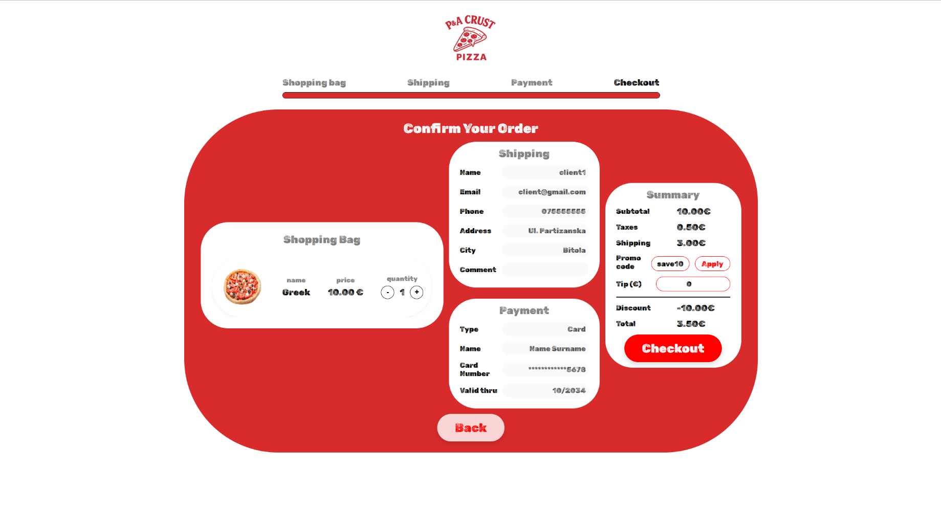 Потоа се отвора финалниот дел за испраќање на нарачката, каде корисникот прави проверка на се внесено до тој момент.