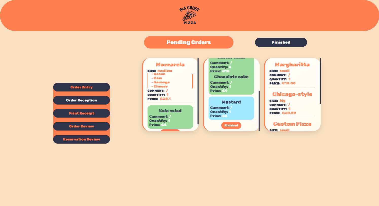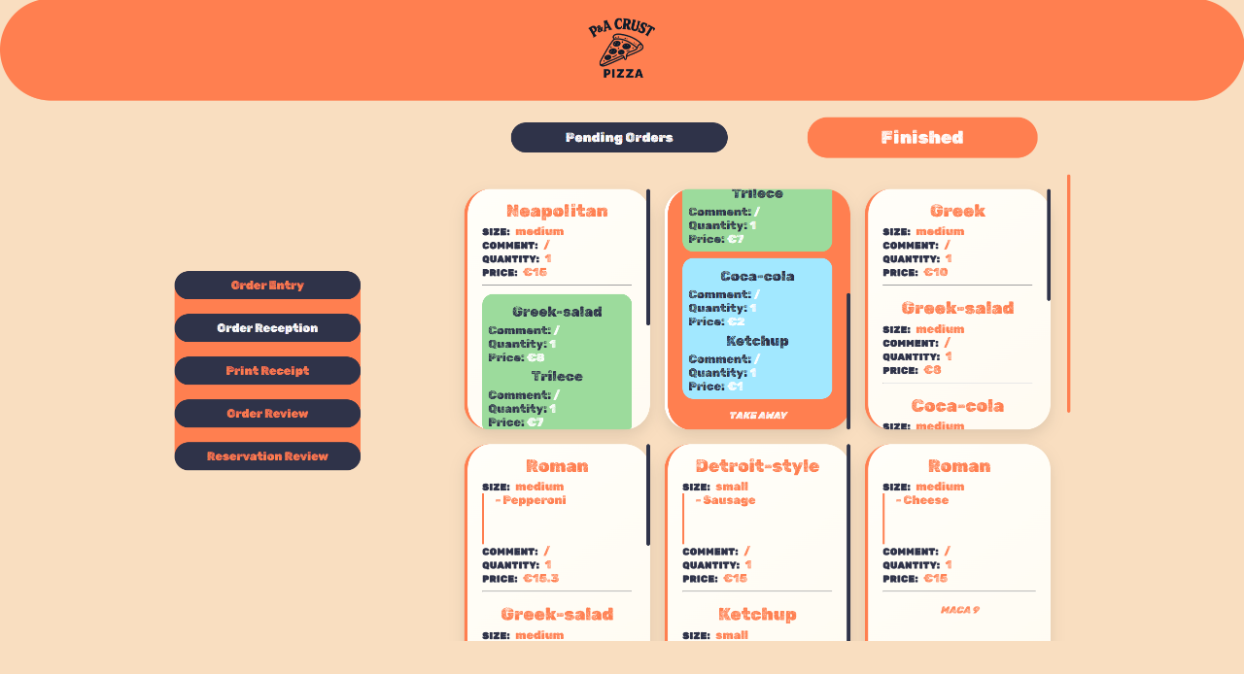 При клик на копчето Finish под нарачката, нарачката се префрла во завршени нарачки (Finished).