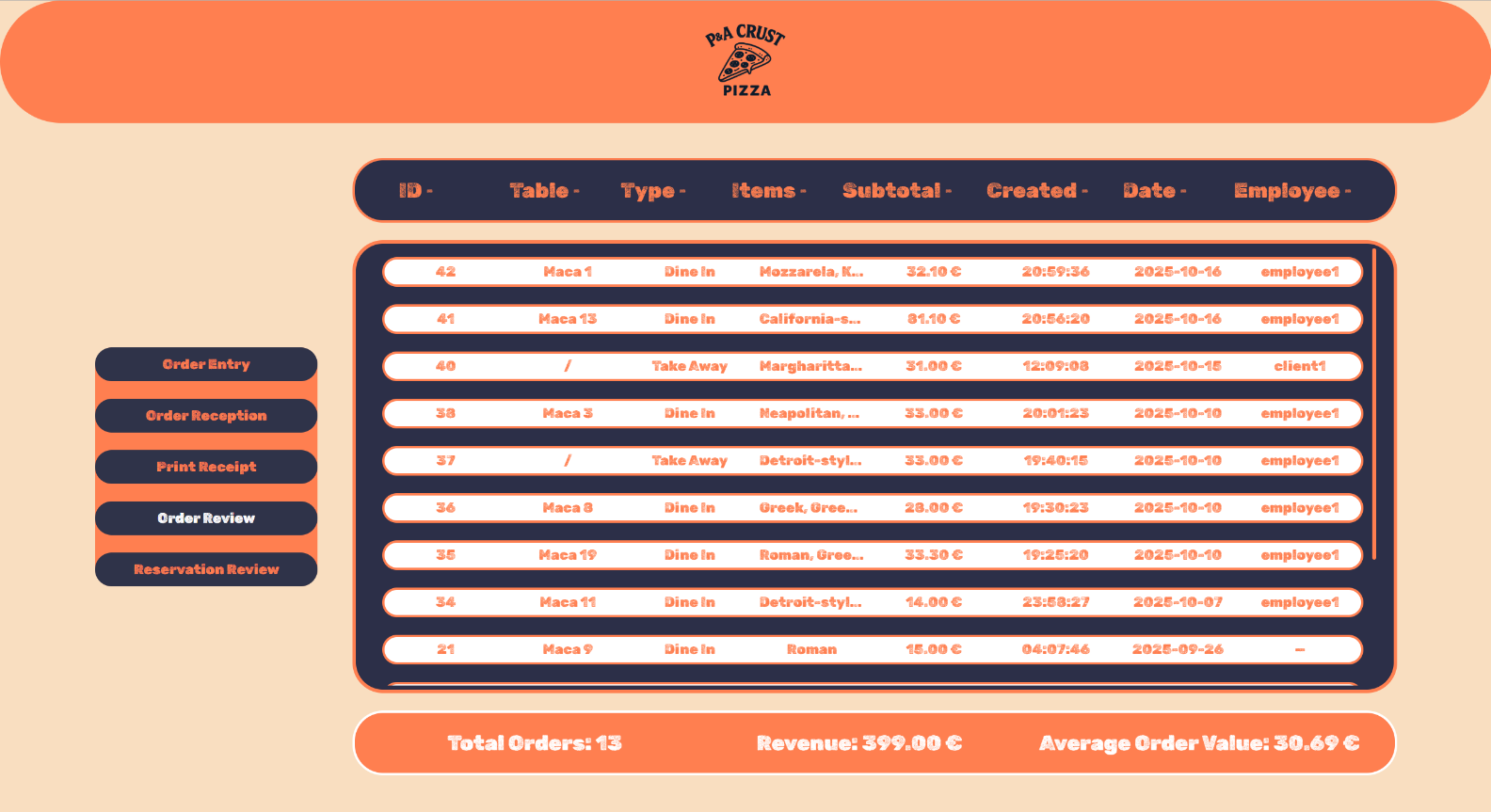 Исто така може да направи преглед на нарачките при клик на Order Review каде ќе ги виде сите извршени нарачки.