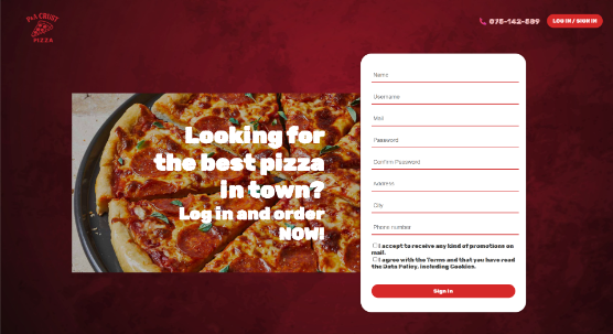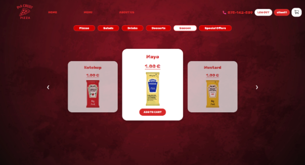 Во случај корисникот да е најавен, системот му овозможува да ја искористи опцијата Add to cart, со што избраната пица се додава во кошничката лоцирана во горниот десен дел од екранот.