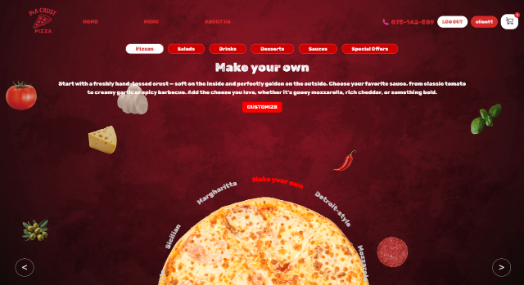 За креирање на сопствена пица, корисникот ја избира опцијата Make your own пица.