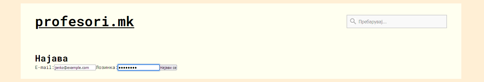 Најавата се врши преку кориснички интерфејс, со POST повик до сервисот за најава.
