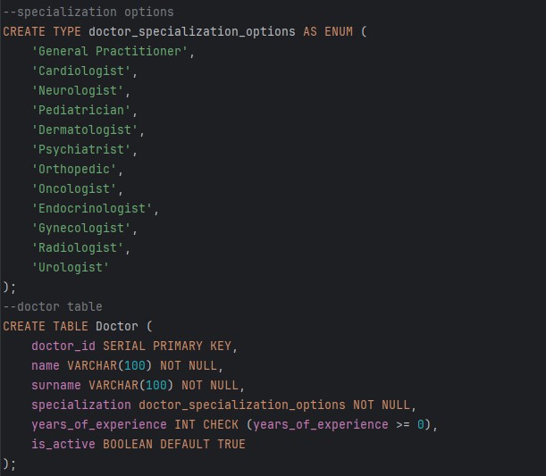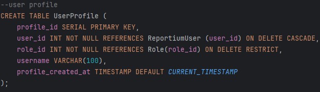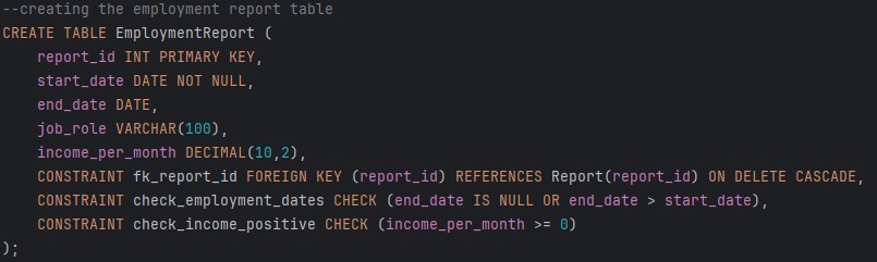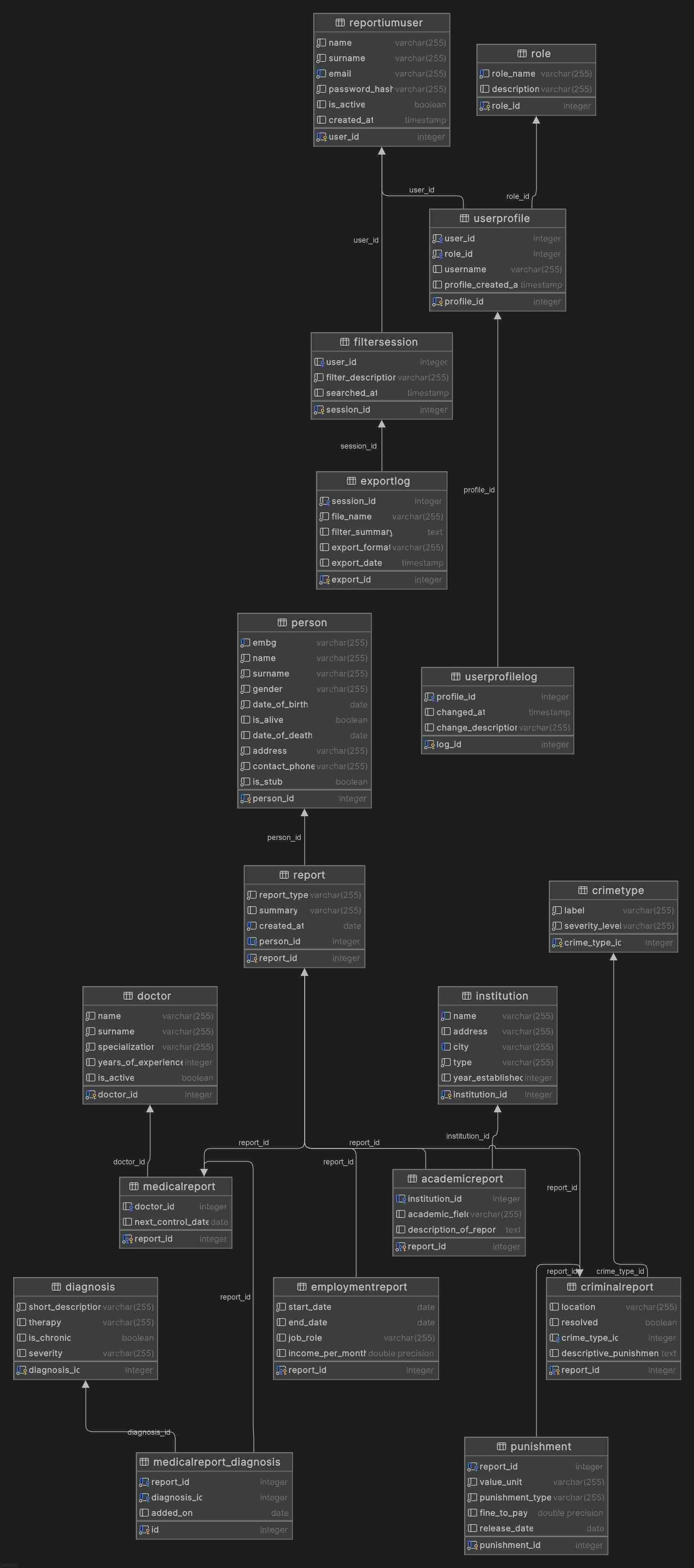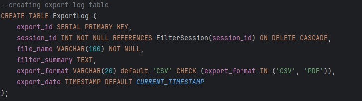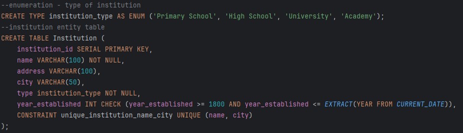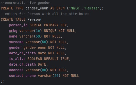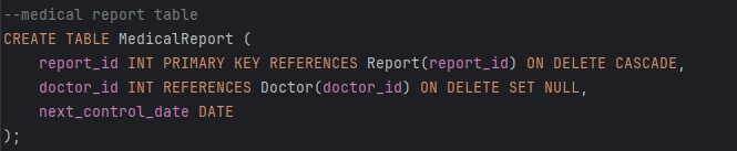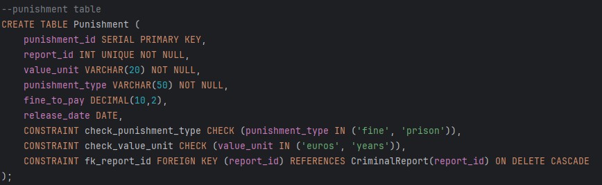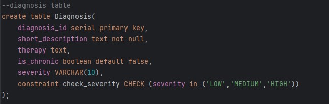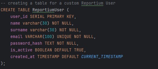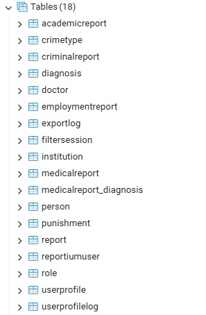 Одкако дизајнот на дијаграмот на релации (ER diagram) беше изработено, започнато беше имплементирањето на ентитетите и нивните релации во постоечка база на податоци. Дизајнот беше изработен во алатката pgAdmin4, добро позната за PostgreSQL бази на податоци. Исто така беше употребувано и DataGrip, која алатка е направена од страна на JetBrains и има интуитивен дизајн за работа.