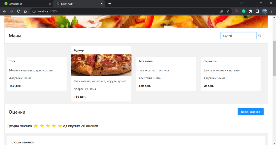 | 3 | Остава средна оценка и feedback/review за услугата или храната |