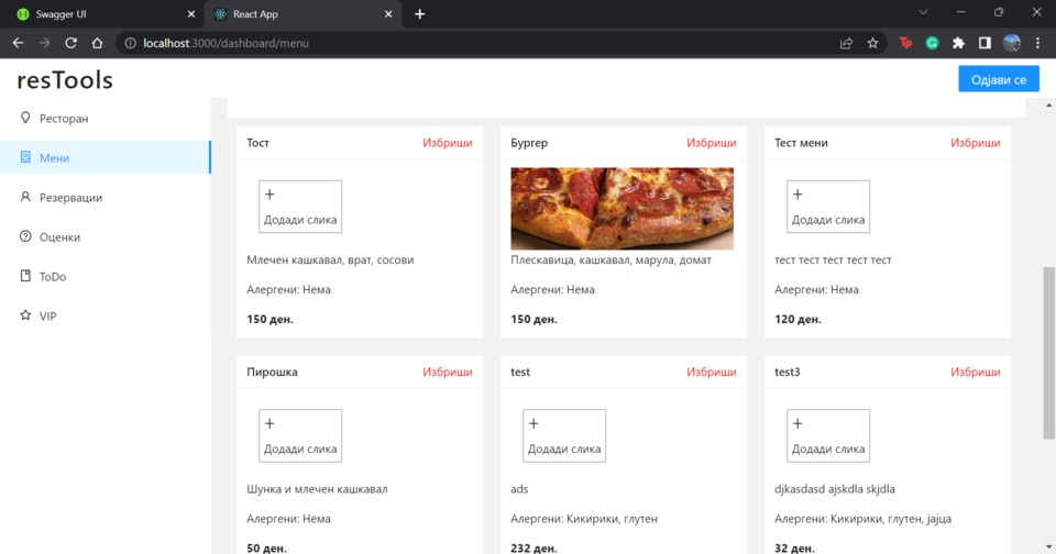 | 10 | Додава слика, алергени и VIP статус на мени |
