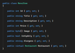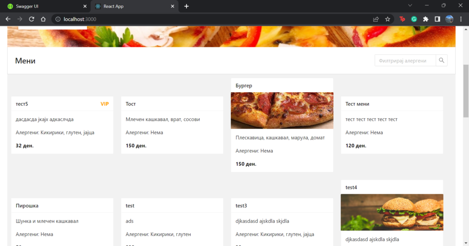 За овие функционалности додадени се променливи за алергени и слика за секоја мени ставка во базата на податоци