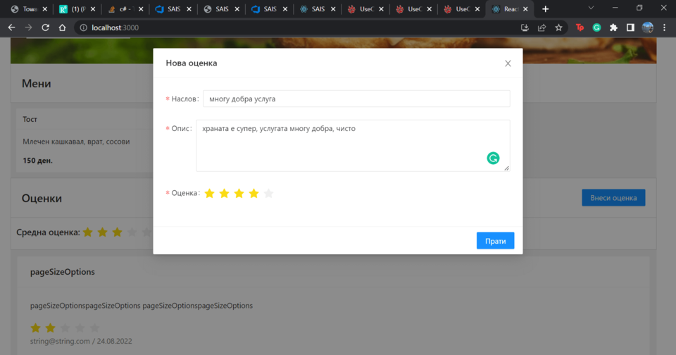 Корисникот клика на копчето за оставање оценка, при што му се појавува следниот модал.