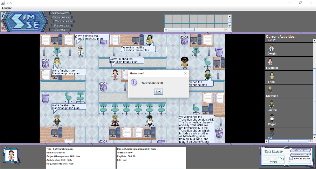Тука се вклучени Gretchen, Tai, Dwight, Elizabeth, Anne, Erica. Кога ќе заврши Transition Phase ни излегува резултатот.