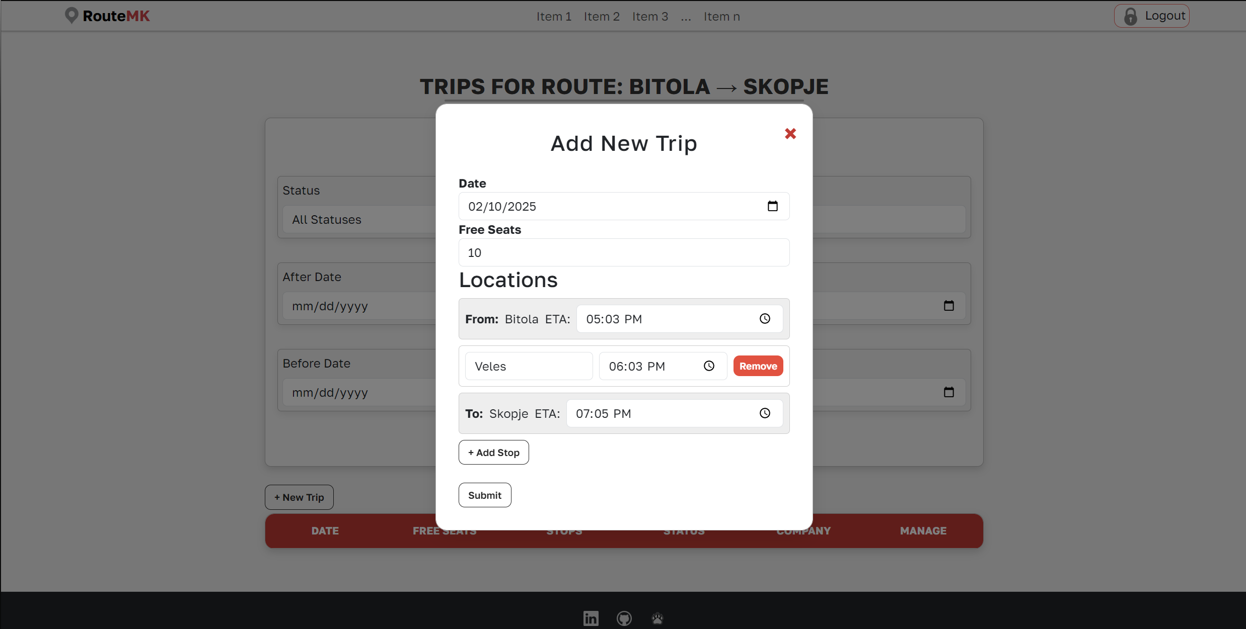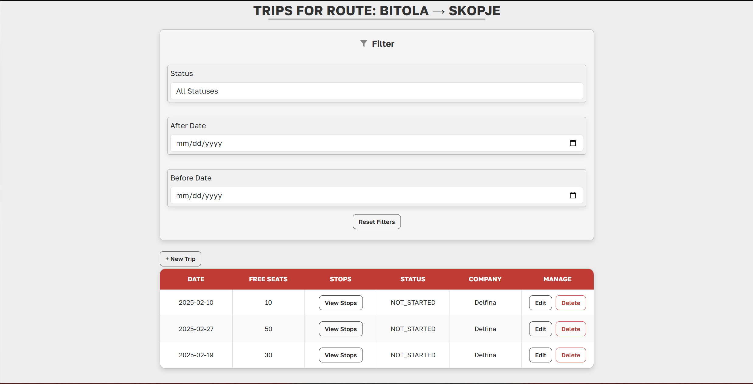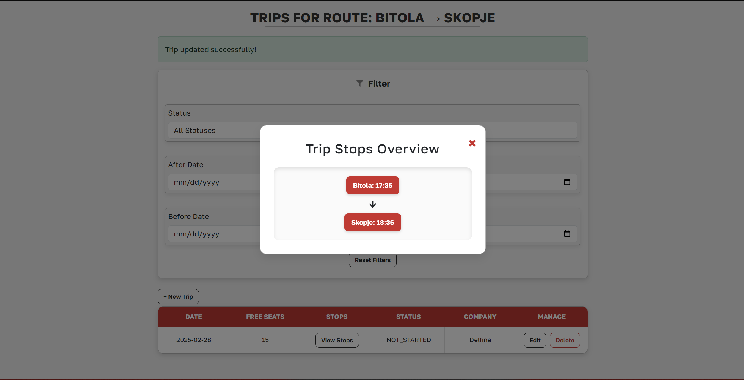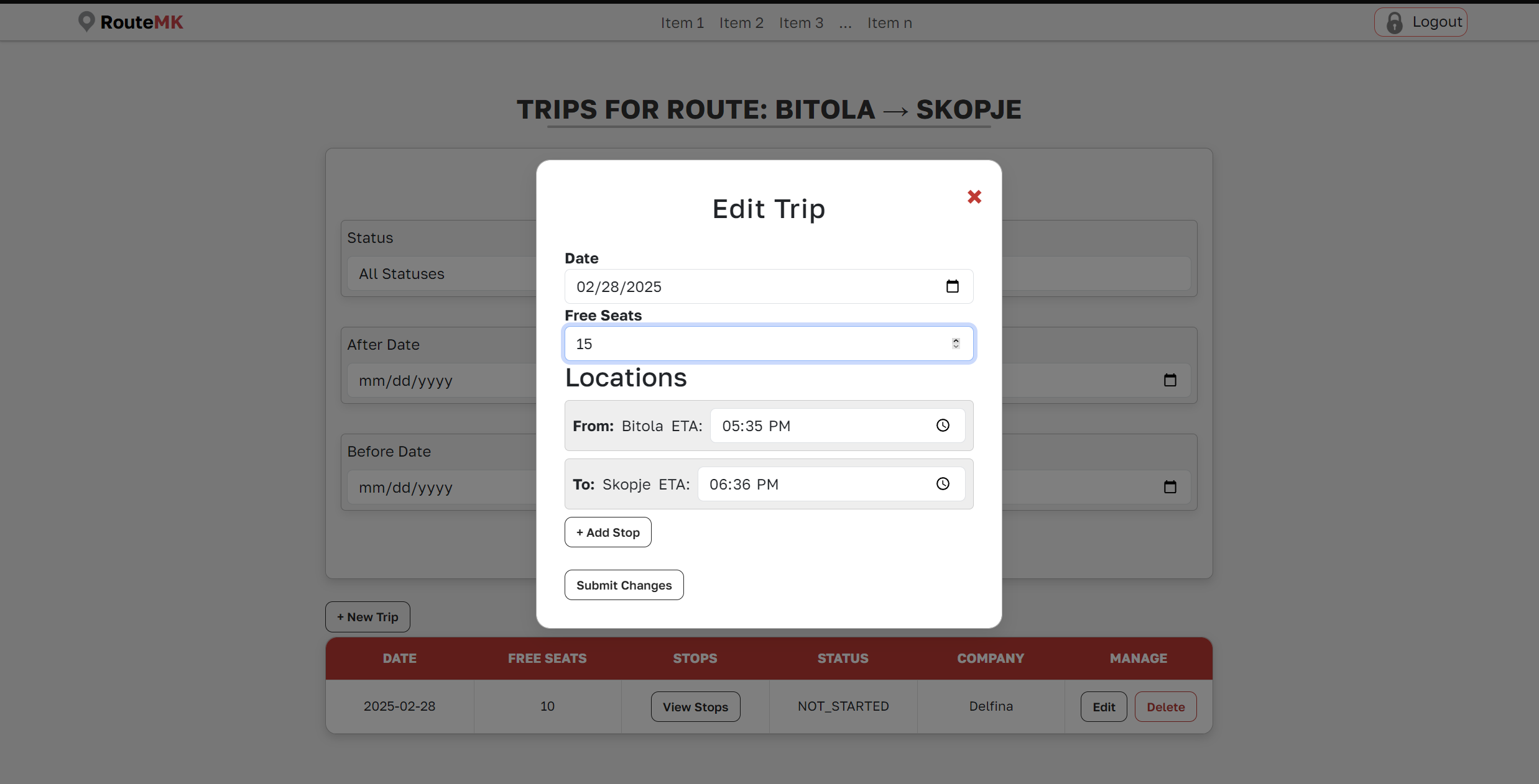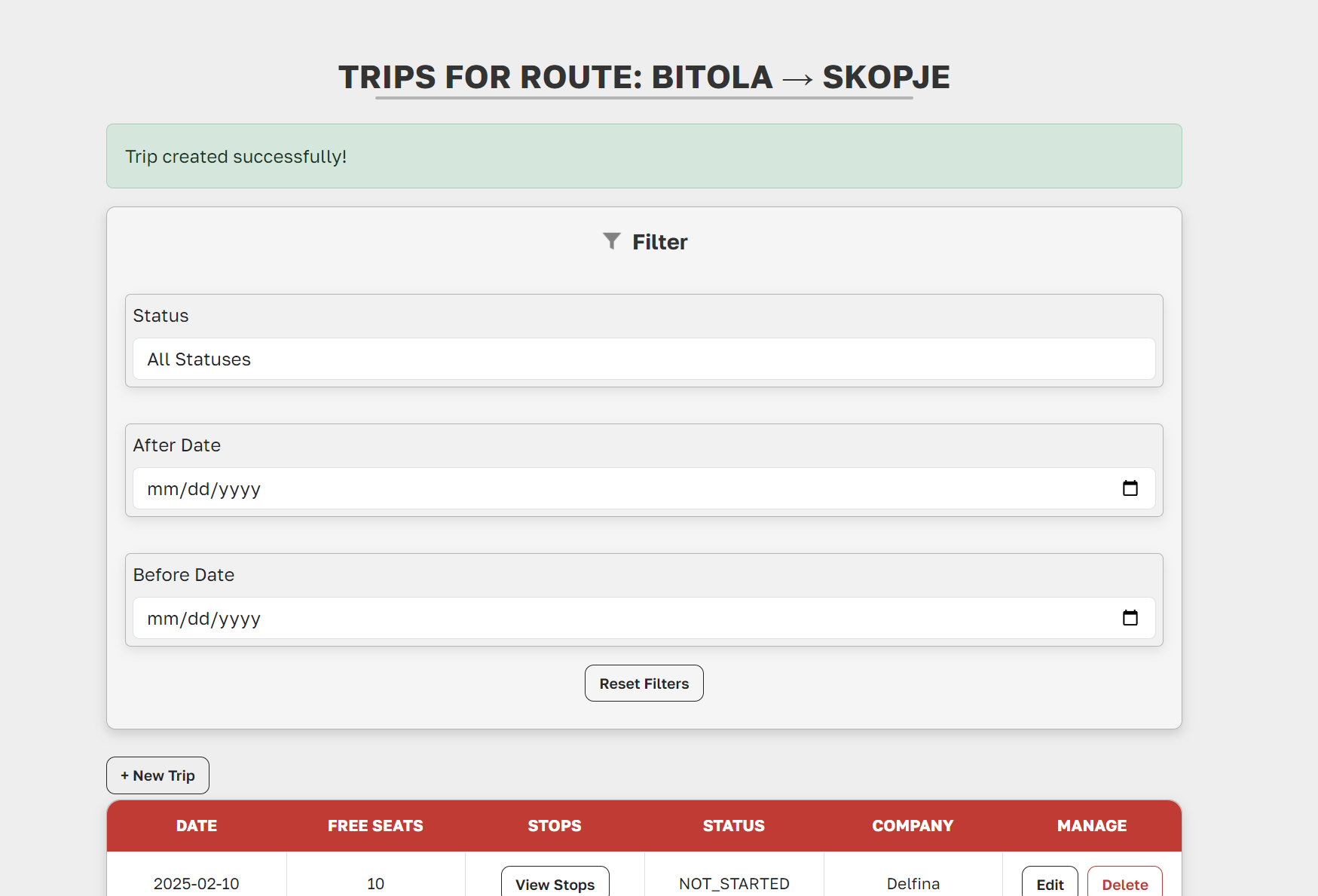 /routes/company/view-trips/{routeId} - Add a new trip: