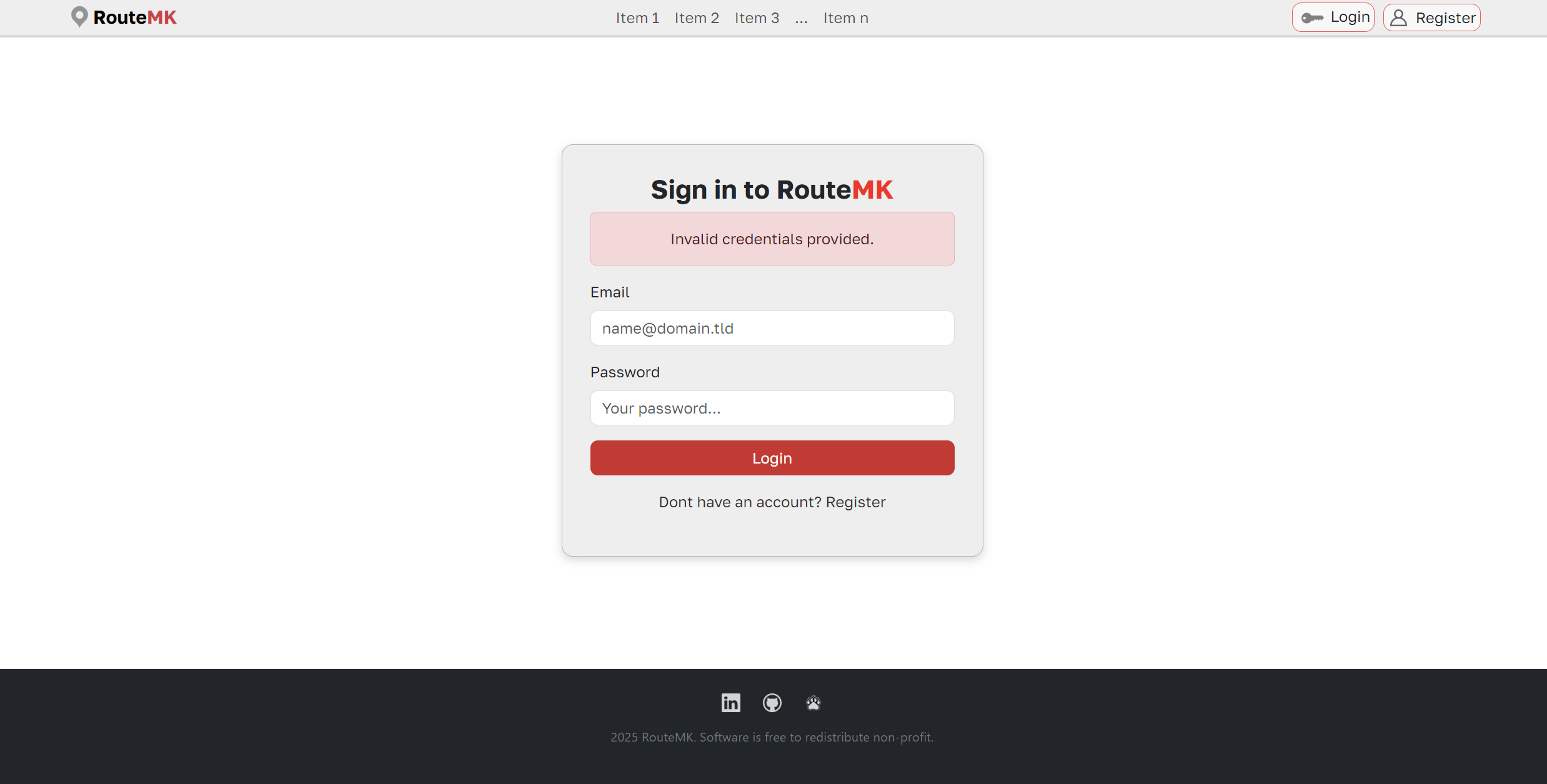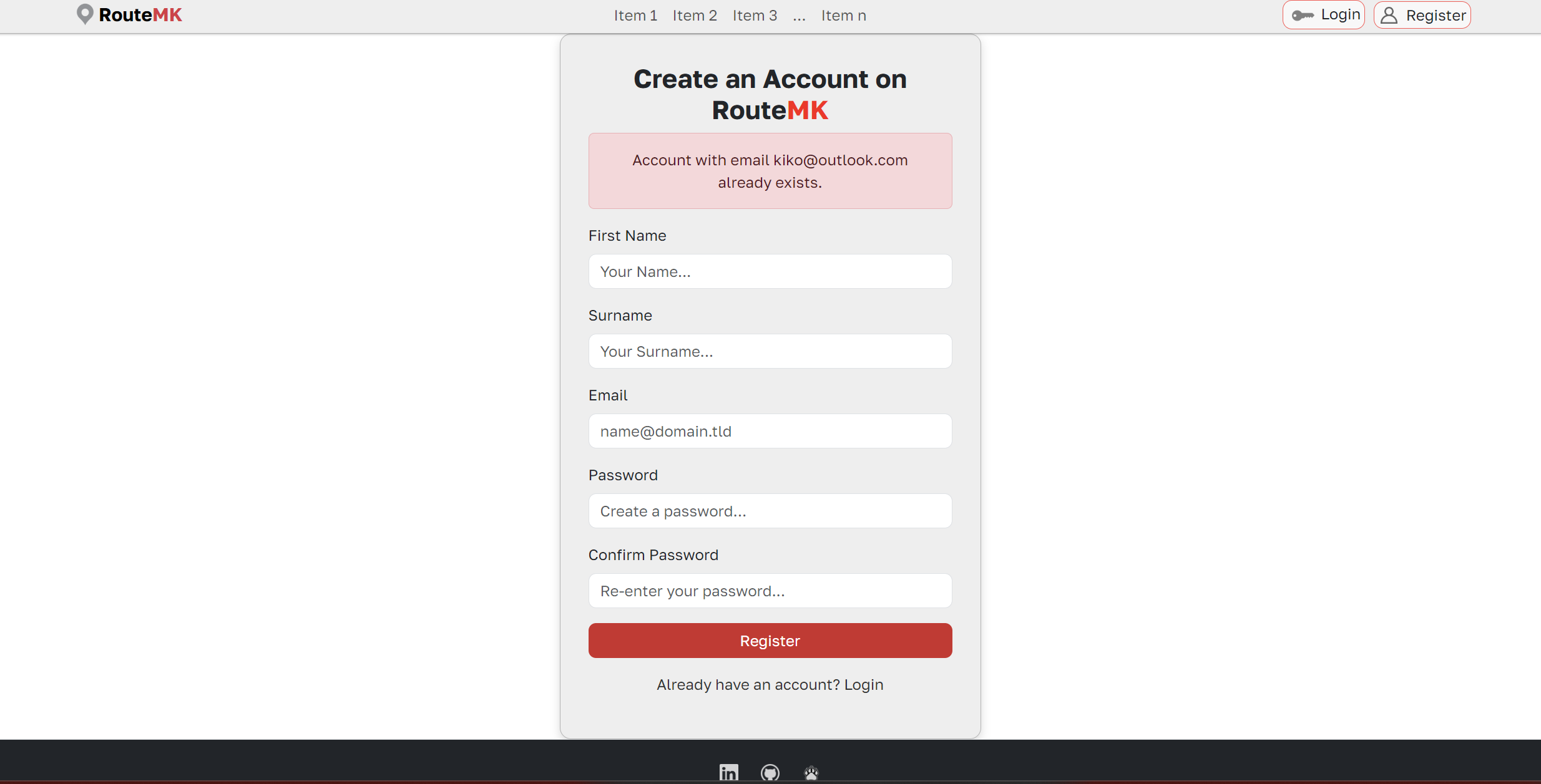 Result of /register with error