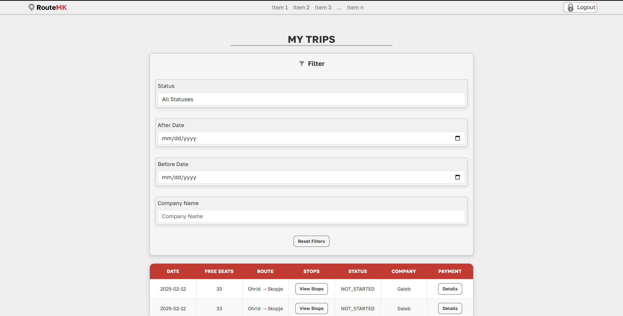 /routes/company - View trips for a specific route: