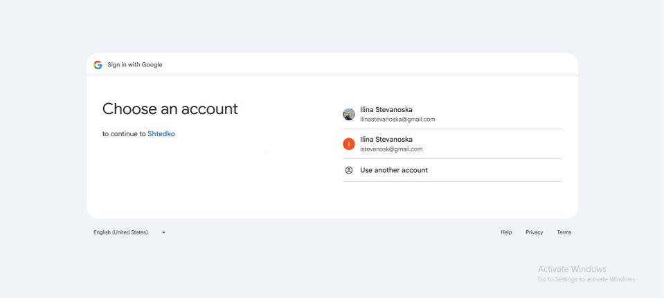 Корисниците можат да се најават на платформата користејќи го својот Google акаунт преку OAuth2 протоколот. Овој метод овозможува безбедно и брзо логирање без создавање нови кориснички лозинки. При најавата, се користат само основни податоци како име и емаил од Google акаунтот.