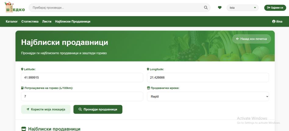 | 17 | Лоцирање на најблиски продавници | Приказ на најблиските продавници според внесена локација и избрани продукти |