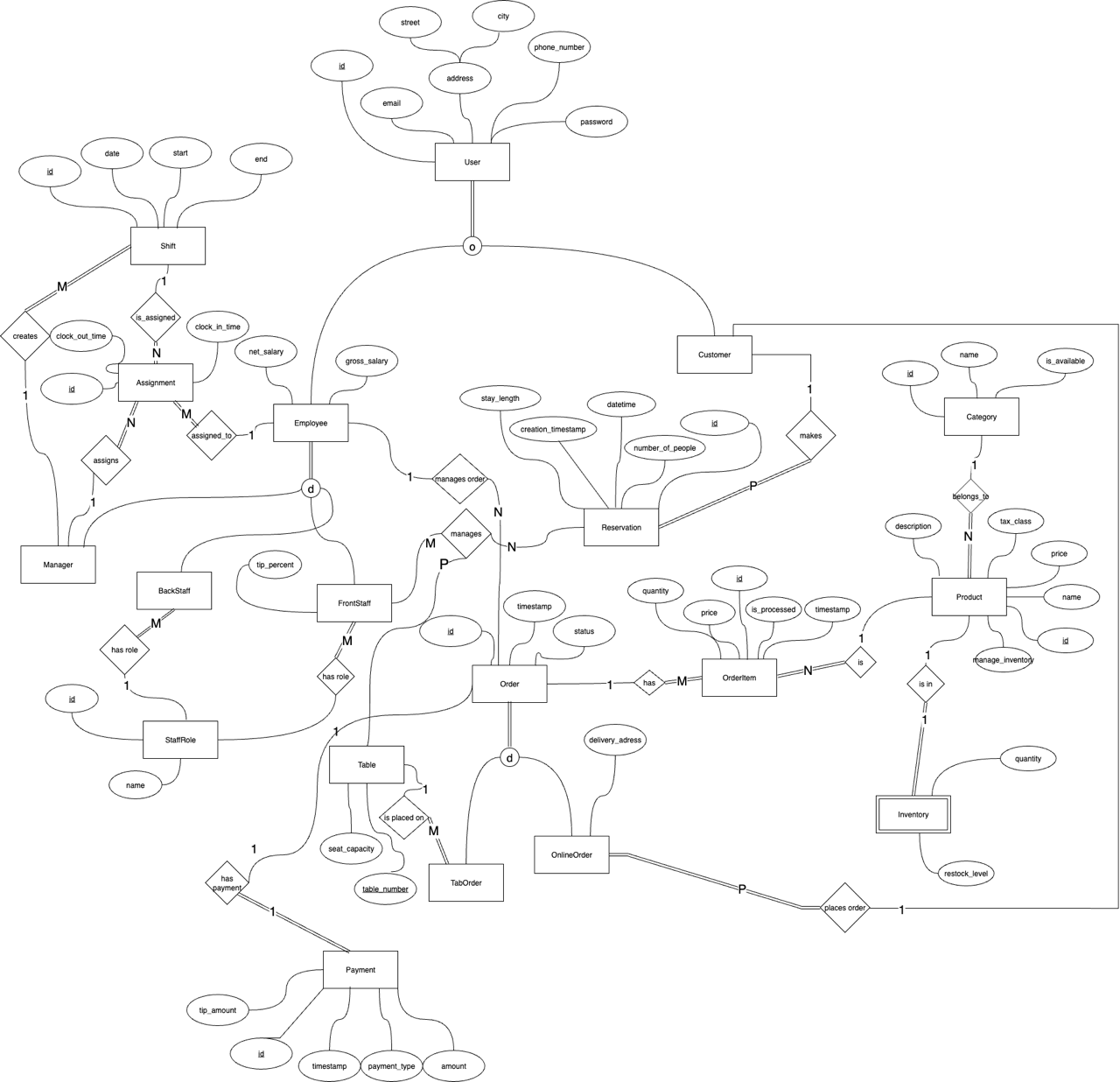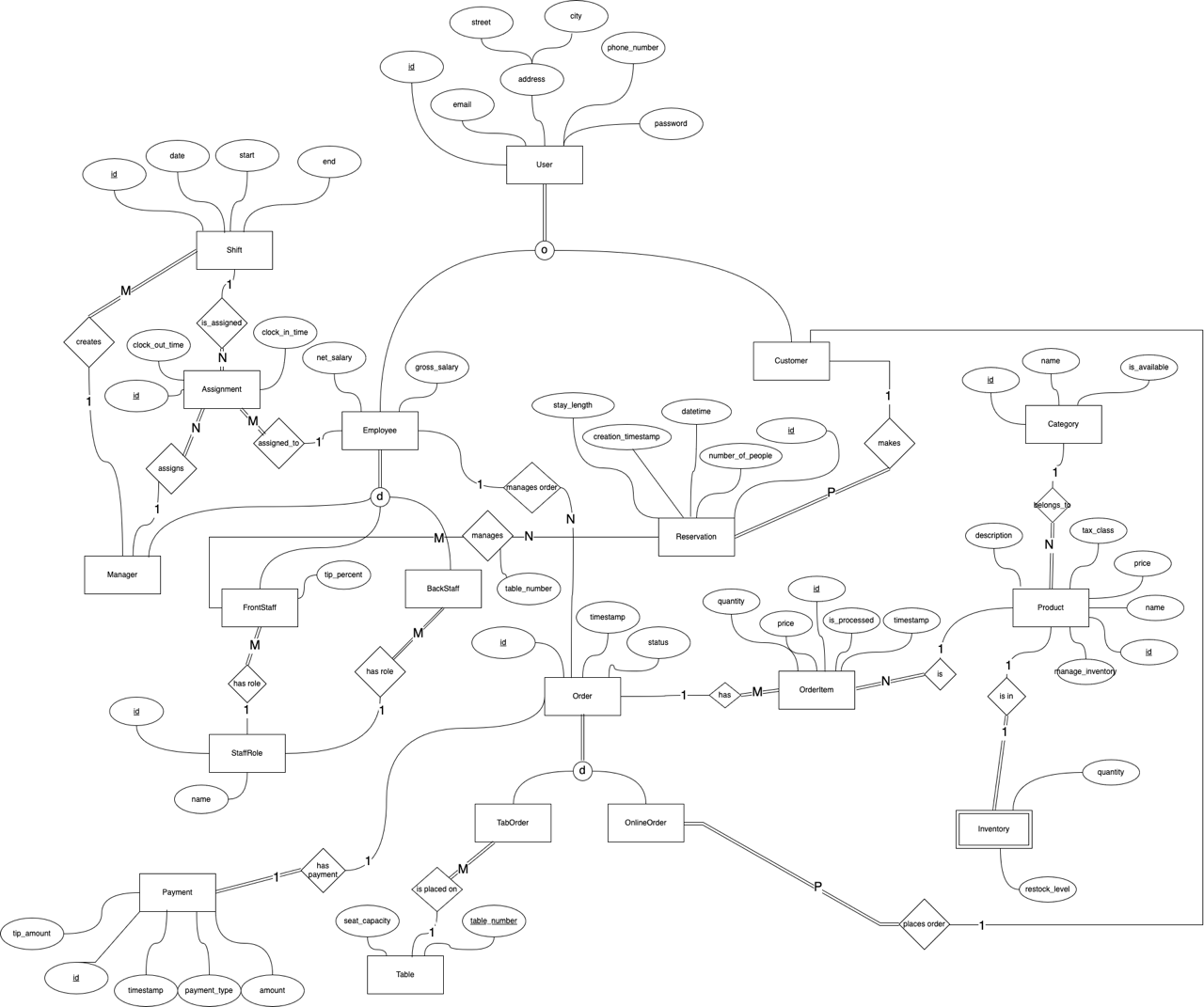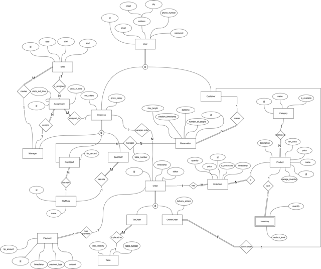 FrontStaff,ReservationandTable.- Description: Indicates which FrontStaff employee manages the current reservation and which table is assigned.