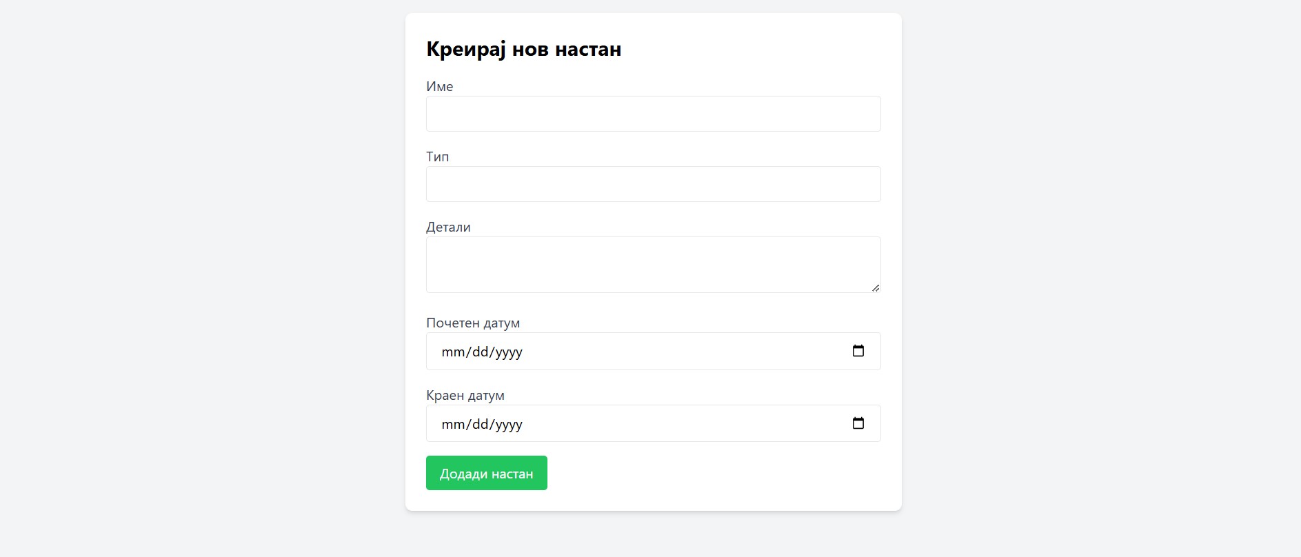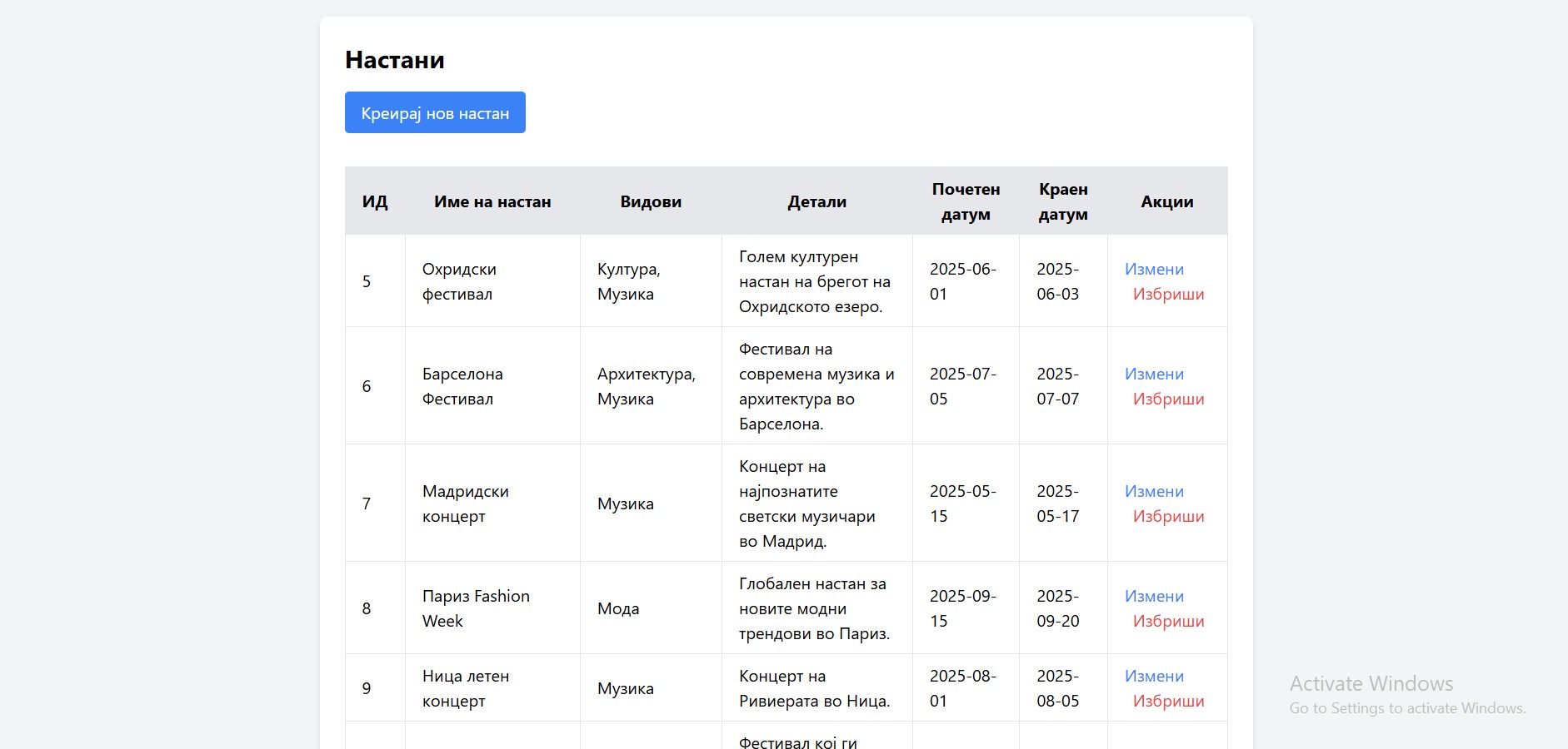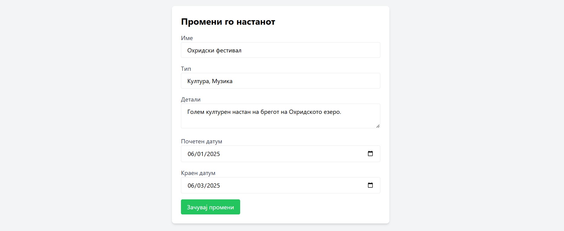Можност за изменување на настан со клик на копчето измени во колоната акции.
