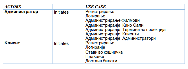 - Пребарување на термин за прикажување на филм.