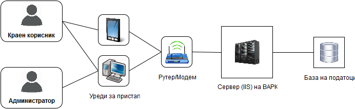 Дијаграм на хардверските компоненти - учесници во функционирањето на целата веб-апликација: