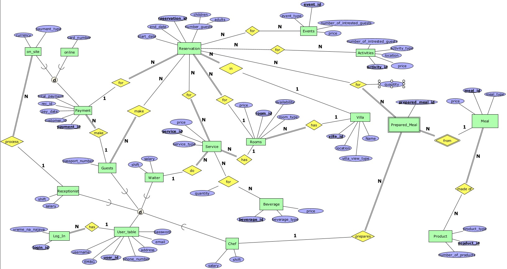 11.reservation_in_villa - N:1, релација помеѓу ентитет Reservation и Villa. Тотално учество од страна на ентитетот Reservation.