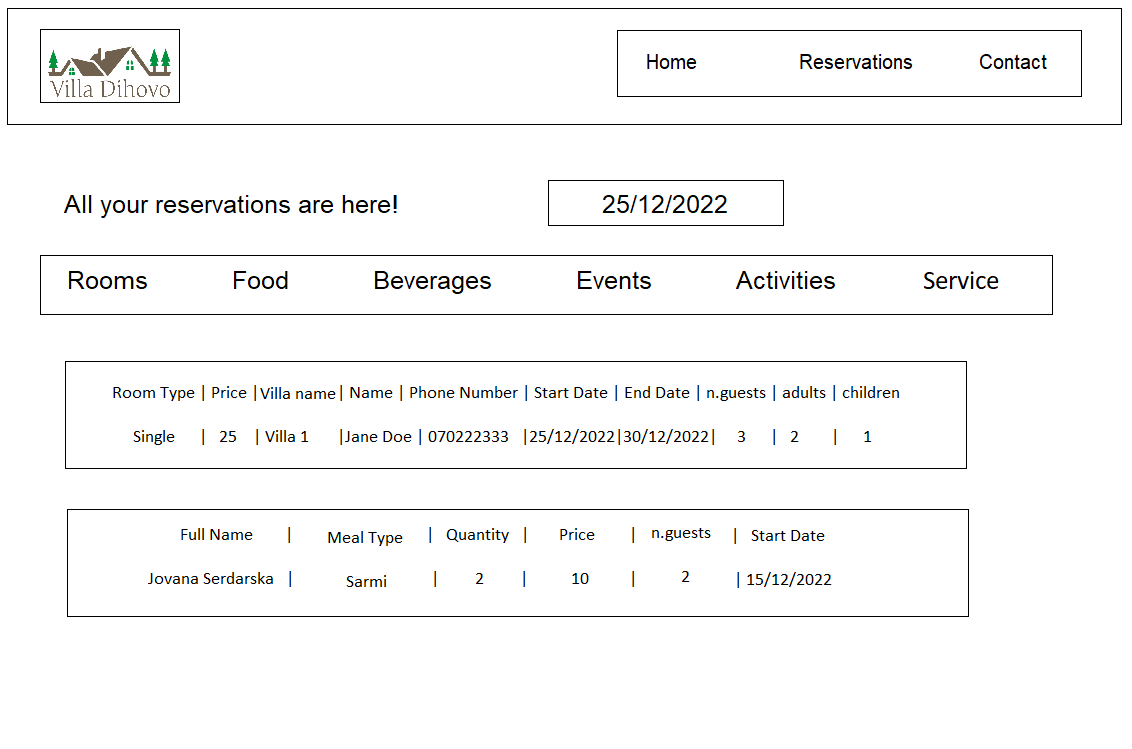 Вработен има пристап до информации за направените резервации за соба, оброк, настан и активност.