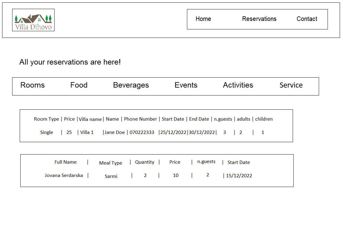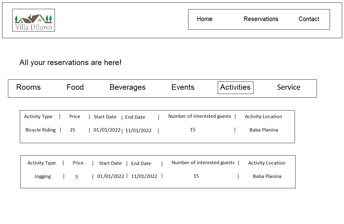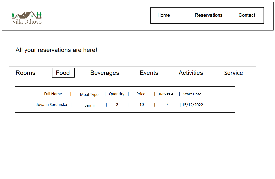 Чекор 9: Избира тип на резервација(соба, оброк, настан или активност) и добива филтрирани податоци