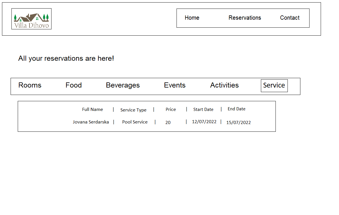 Вработениот со веќе добиени податоци за најава се најавува на апликацијата. Вработениот кој претходно се има најавено, има пристап до информации за направените резервации за соба, оброк, настан и активност.